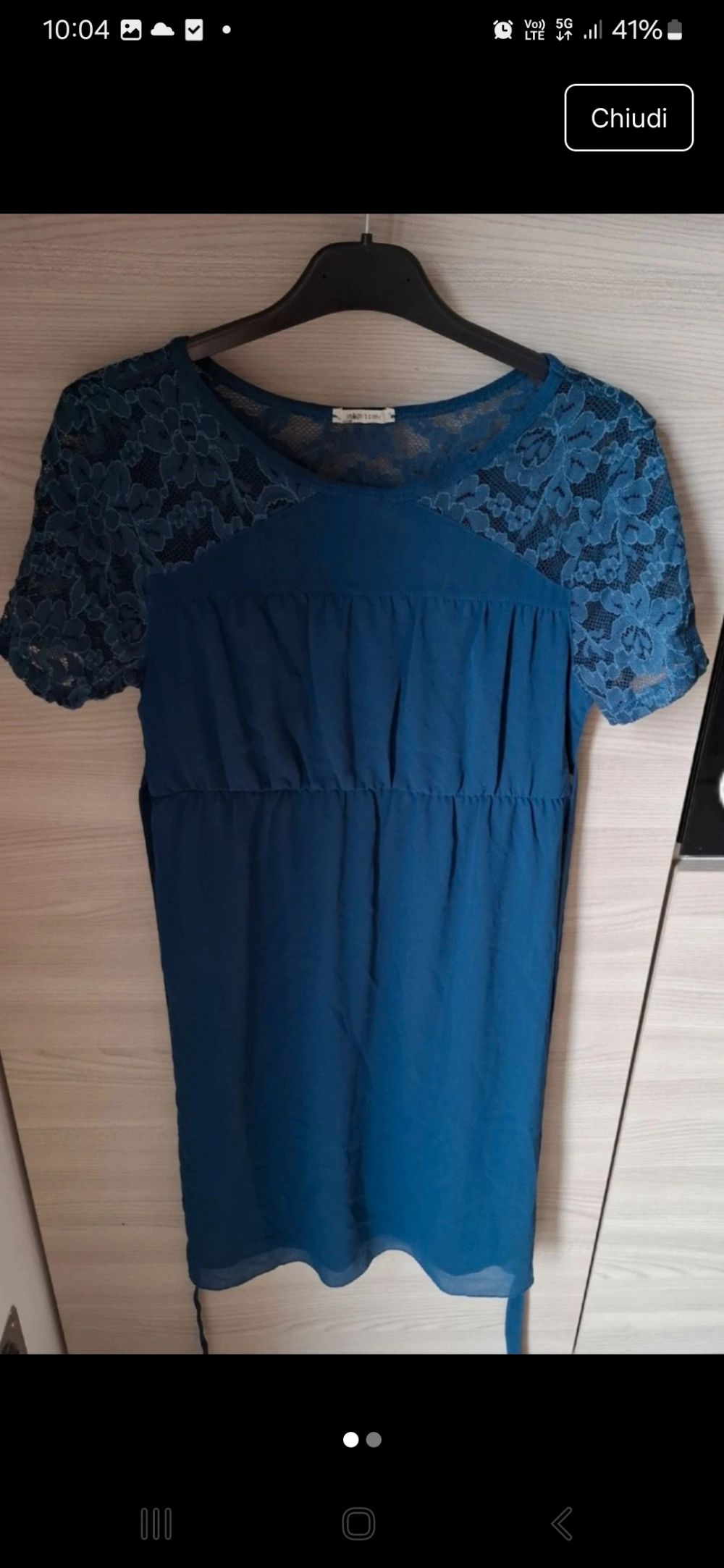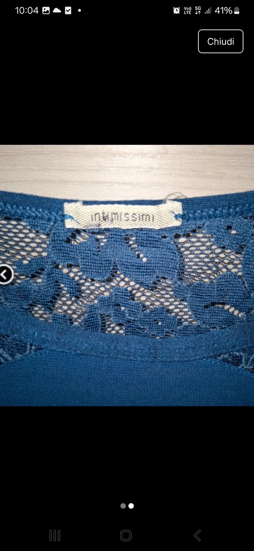 Abito Intimissimi colore petrolio. Molto bello ma non mi entra neppure una manica. Preso qui come TG . M-L ma secondo me veste una TG. S. Non c''è etichetta. Rimetto in circolo. Spedisco in collettiva spero prima di Natale
