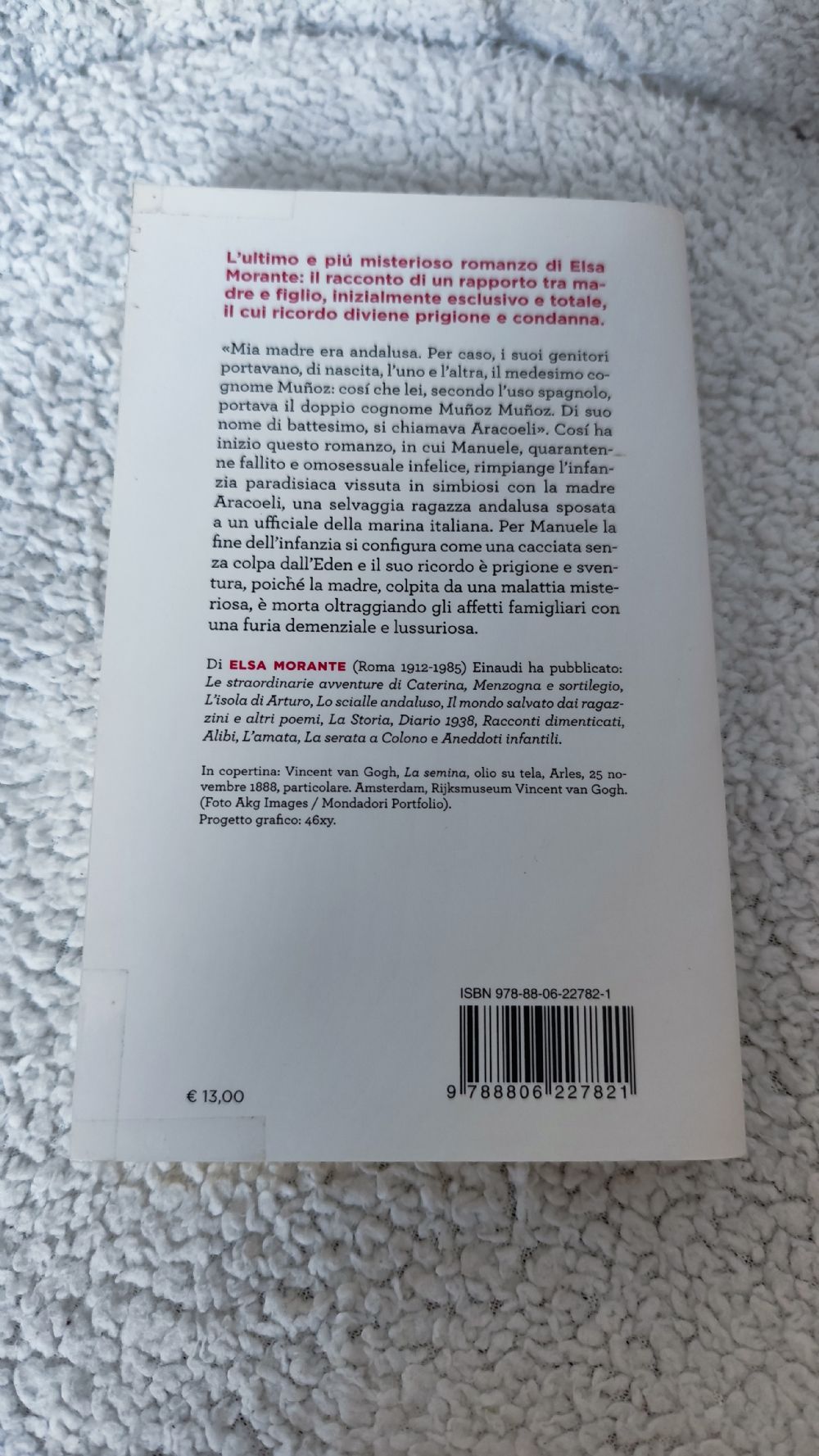 «Mia madre era andalusa. Per caso, i suoi genitori portavano, di nascita, l'uno e l'altra, il medesimo cognome Munoz: cosí che lei, secondo l'uso spagnolo, portava il doppio cognome Munoz Munoz. Di suo nome di battesimo, si chiamava Aracoeli». Cosí ha inizio questo romanzo, in cui Manuele, quarantenne fallito e omosessuale infelice, rimpiange l'infanzia paradisiaca vissuta in simbiosi con la madre Aracoeli, una selvaggia ragazza andalusa sposata a un ufficiale della marina italiana. Per Manuele la fine dell'infanzia si configura come una cacciata senza colpa dall'Eden e il suo ricordo è prigione e sventura, poiché la madre, colpita da un morbo misterioso, è morta oltraggiando gli affetti familiari con una furia demenziale e lussuriosa.