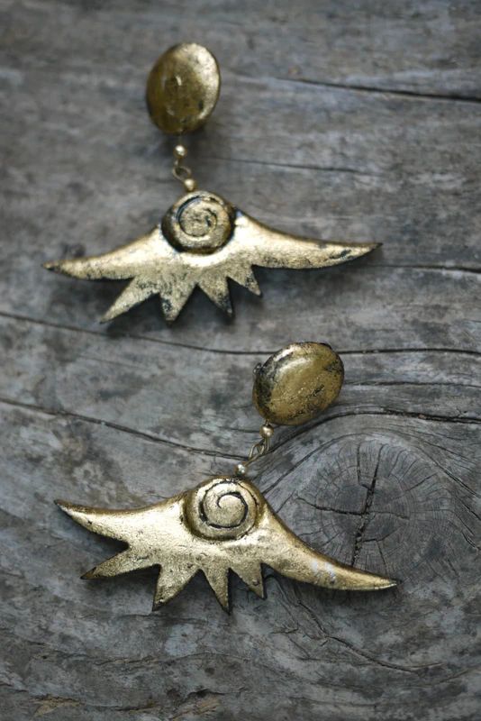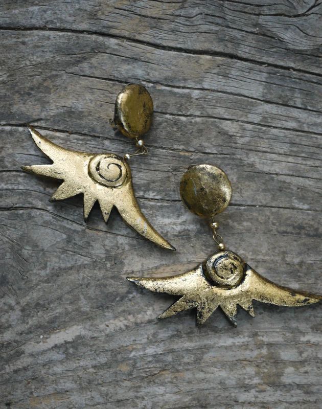 Descrizione:Particolari orecchini fatti a mano con tecnica foglia oro