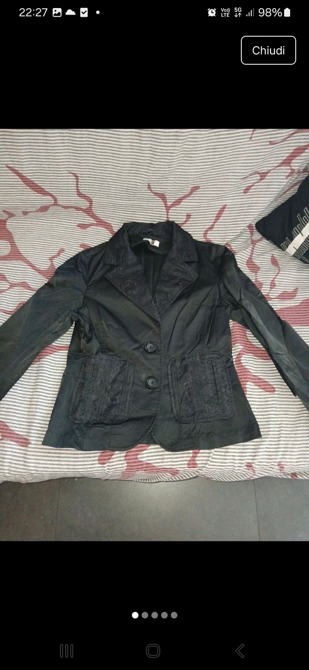 Descrizione:Giacca nera marca Zuiki. Modello attillato. TG. 44 ma in realtà è una TG. 42. Bella da indossare sopra al reggiseno. Cotone, Nylon, elastan. Spedisco in collettiva prima di Natale