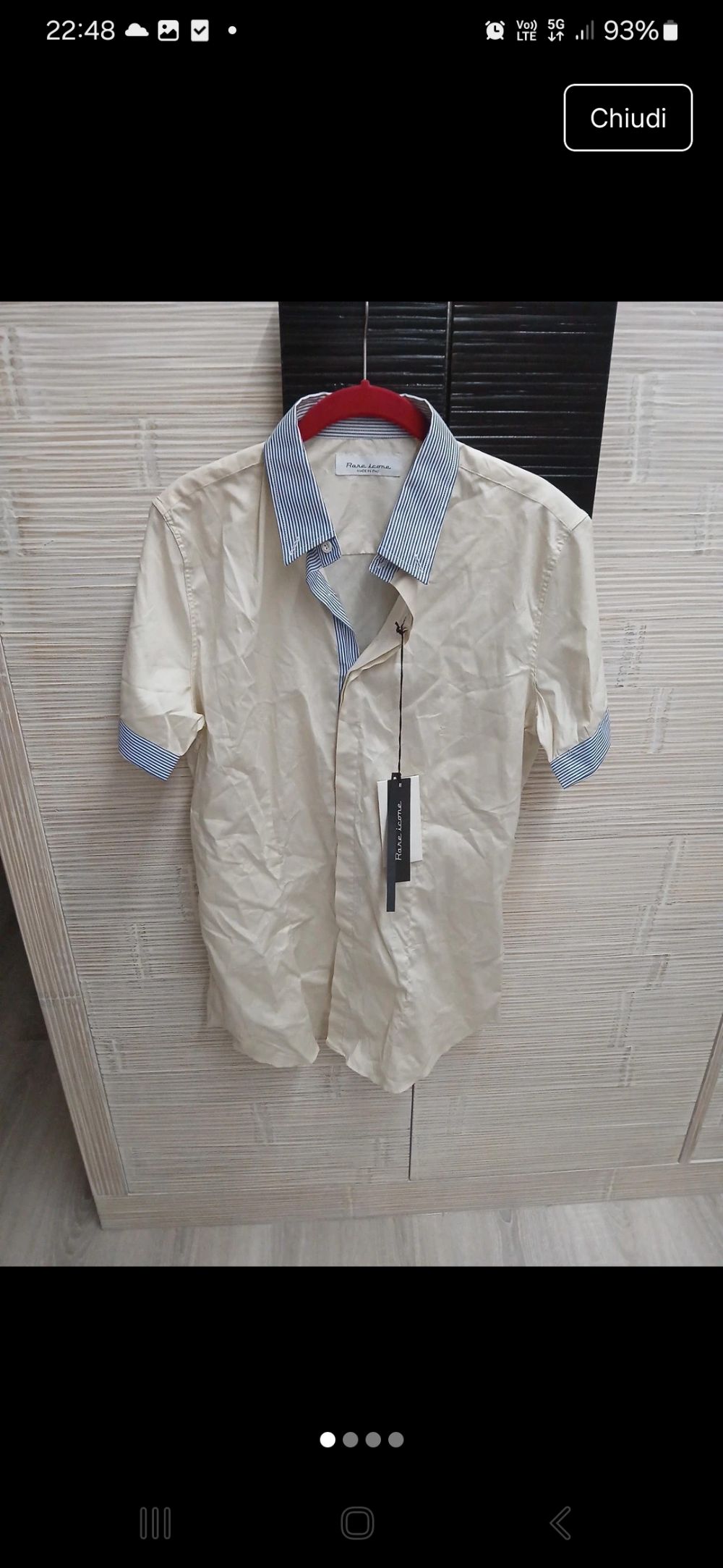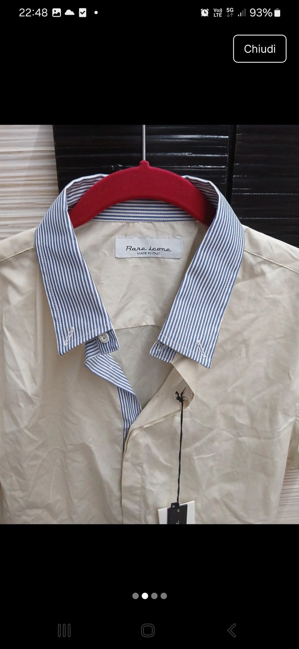 Camicia uomo nuova con cartellino TG. 50/L. Composizione 96% cotone e 4% elastan. Misure 43 cm spalle e 78 cm di lunghezza. Made in Italy. Spedisco in collettiva prima di Natale