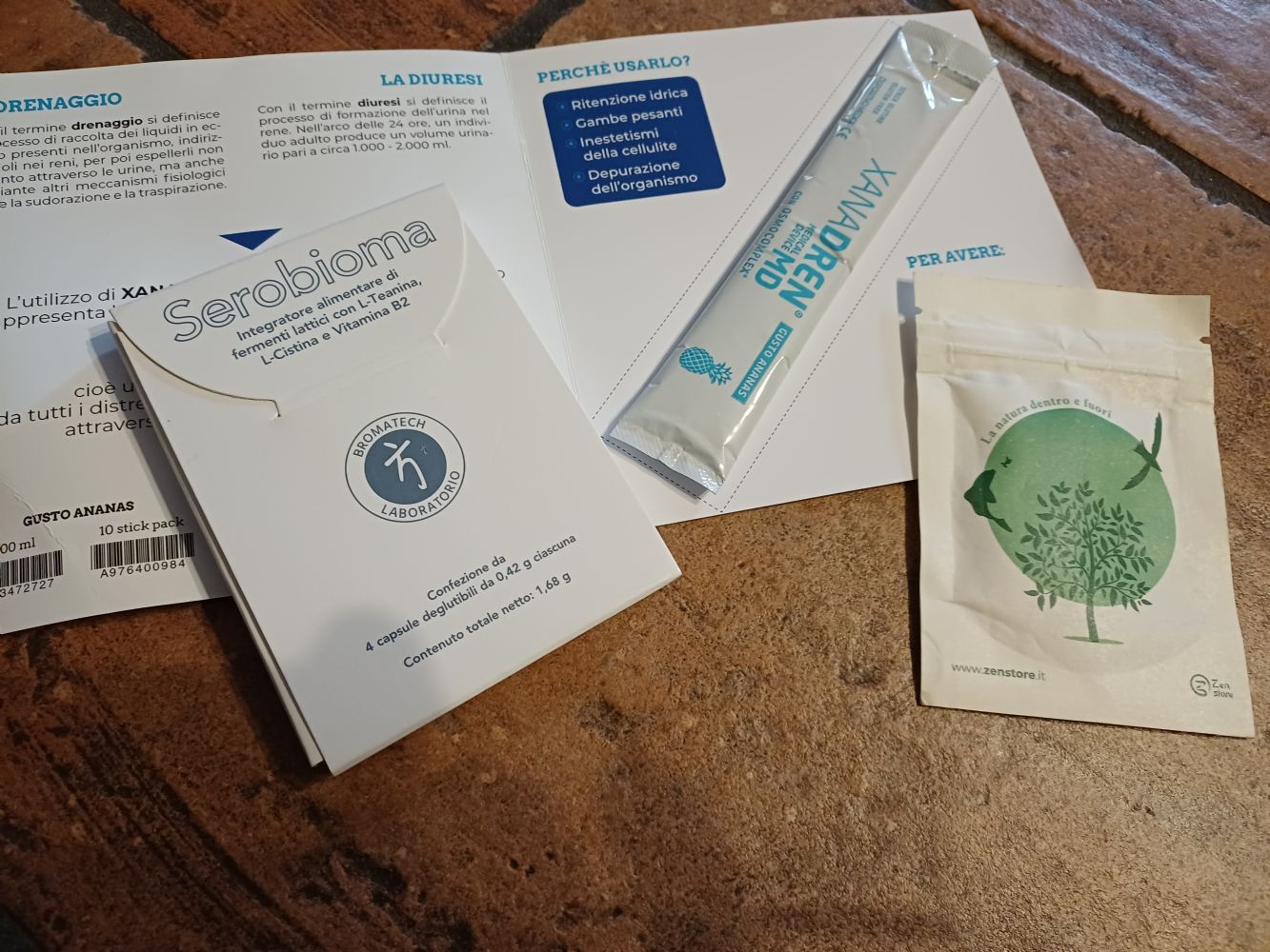 Descrizione:1 campioncino Serobioma (fermenti lattici e vit.B2) 1 Xanadren x il drenaggio dei liquidi in eccesso. 1 bustina di argilla gialla