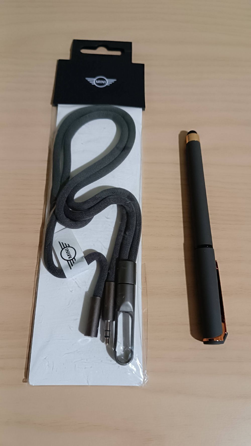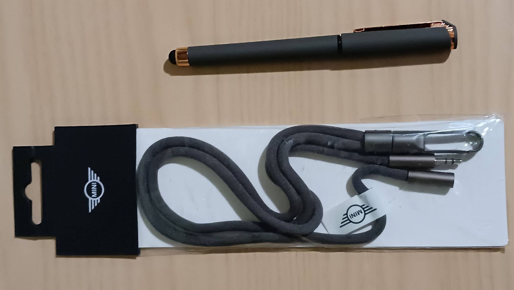 composto da un cordino/laccetto portachiavi o altro e di un adattatore sdoppiatore audio... credo.