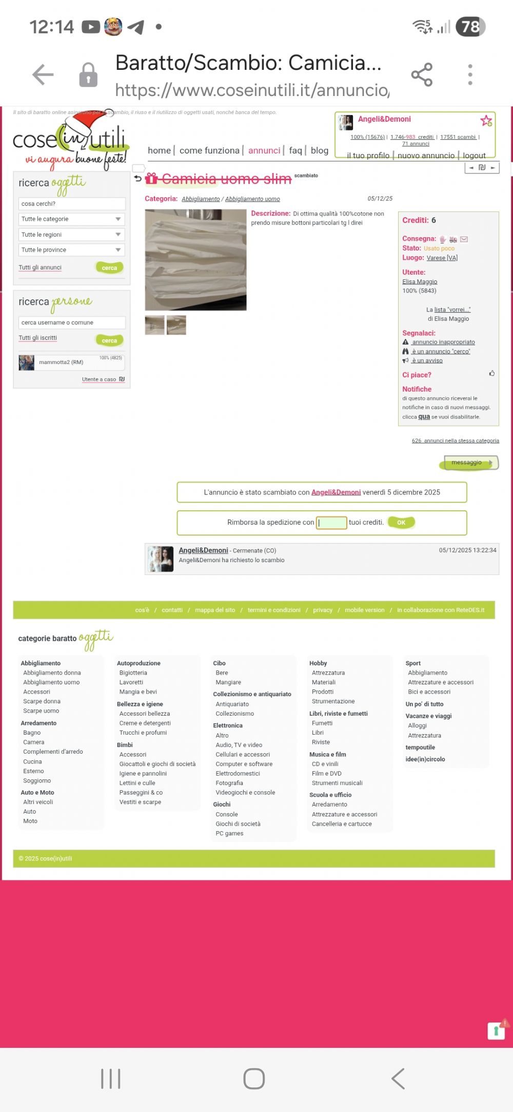 Il sito di baratto online asincrono per lo scambio, il riuso e il riutilizzo di oggetti usati, nonché banca del tempo.
