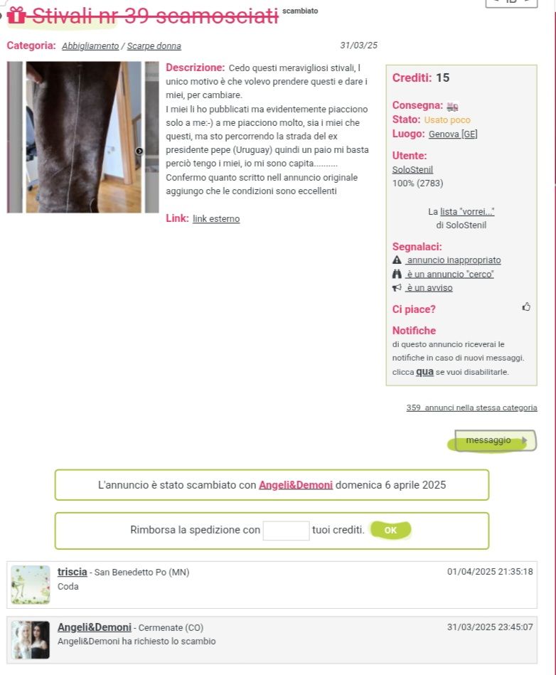 di questo annuncio NON riceverai le notifiche in caso di nuovi messaggi.