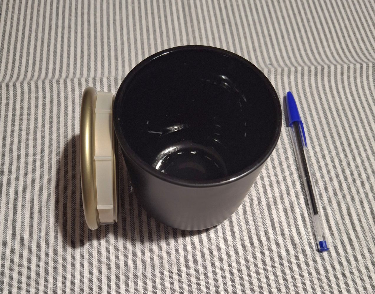 Descrizione:Conteneva una candela profumata, l'ho lavato bene ma il profumo si avverte ancora, sfregando con la spugnetta abrasiva, in qualche punto ho tolto un pò di colore all'interno, l'esterno invece è ok.