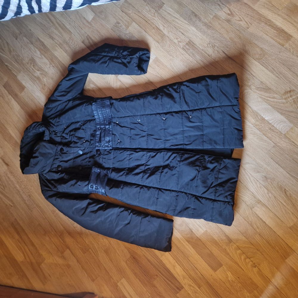 Descrizione:Piumino marca rinascimento taglia s, non veste molto 40/42 ha la cintura sotto il seno a cui mancano dei bottoni ma si chiude ugualmente e non si vede il difetto. Composizione poliestere