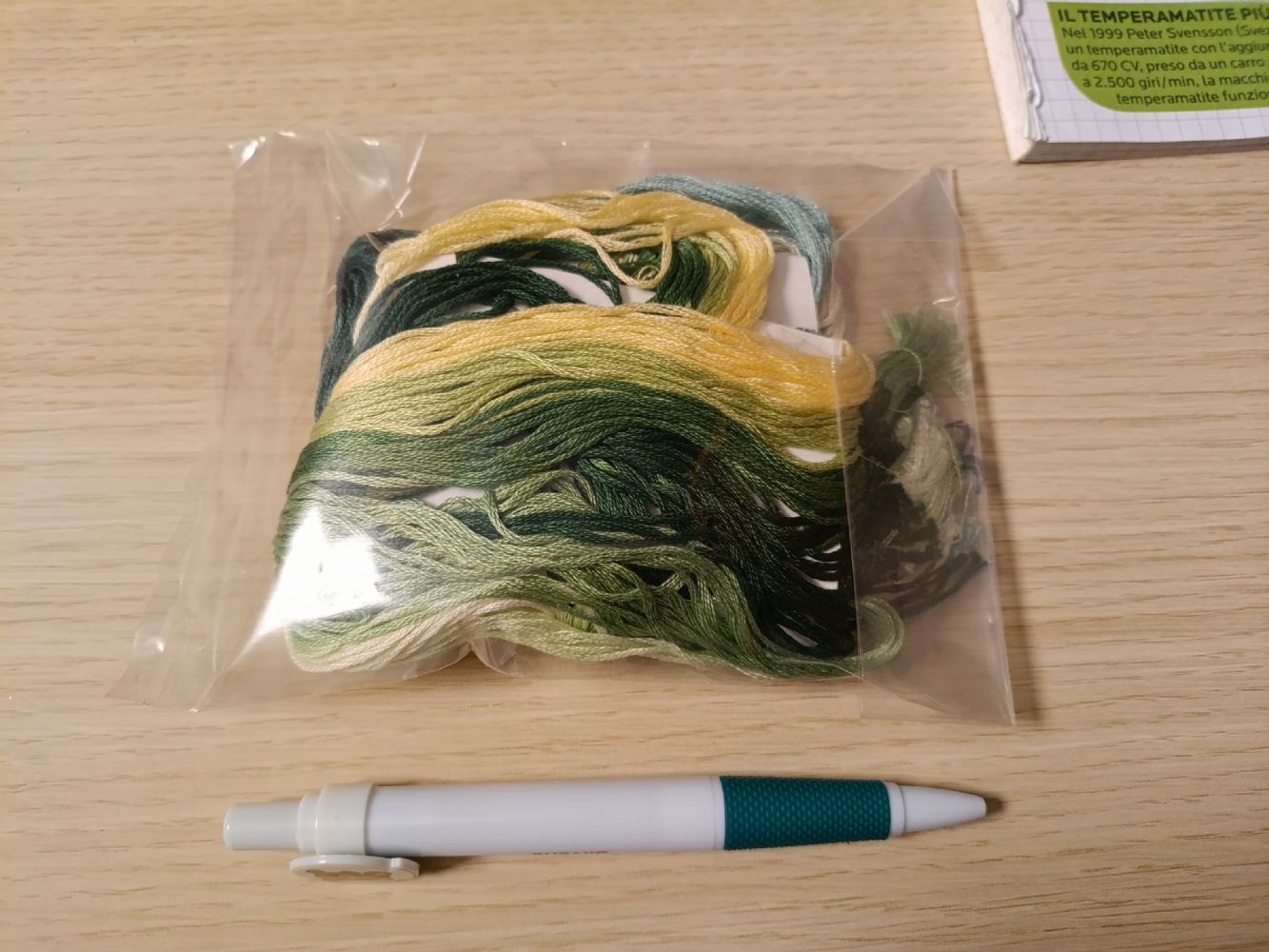 Descrizione:Sacchetto con diverse gugliate di filo da ricamo, nuovo, me lo hanno passato, ipotizzo che facesse parte di un kit da ricamare che non è stato usato (il sacchetto non è mai stato aperto)