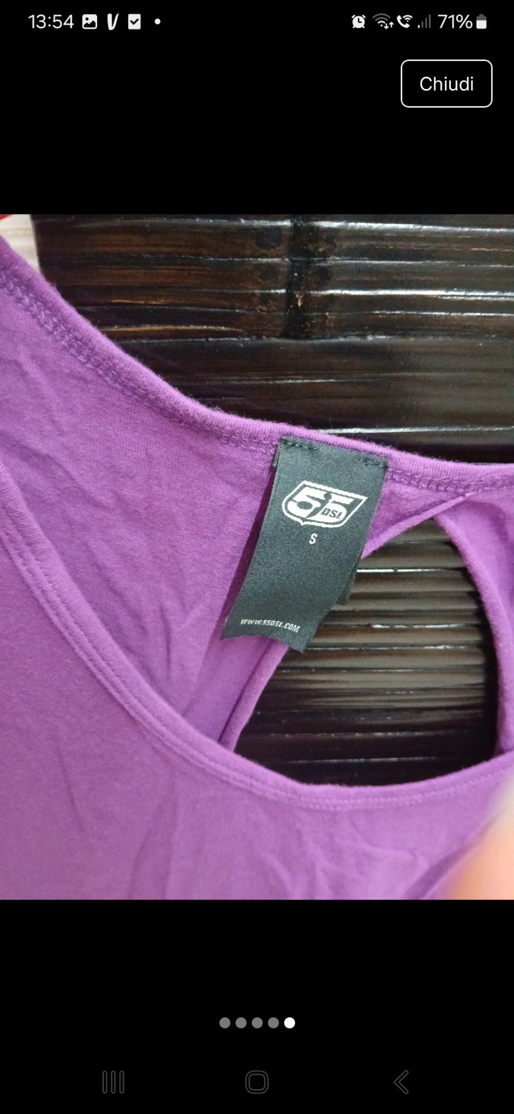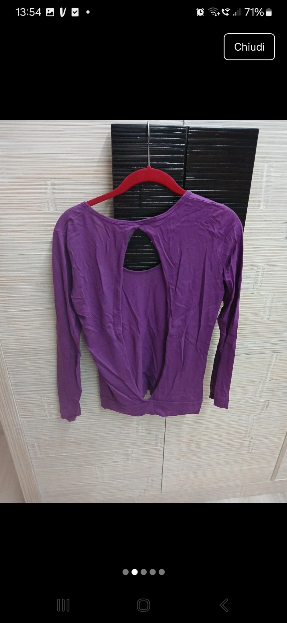 Bella maglietta a maniche lunghe con schiena scoperta. TG. S. Viola. Ottime condizioni. 100% cotone. Collettiva in partenza