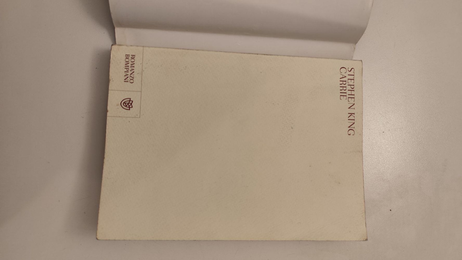Descrizione:Libro Carrie di Stephen King, edizione Bompiani, copertina flessibile con sovra copertina, purtroppo molto rovinato, bordi delle pagine con fioriture, integro e perfettamente leggibile; dovrebbe essere un horror ma non fa paura, facile lettura.