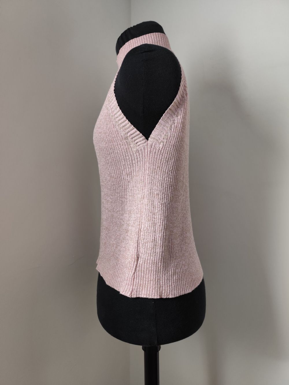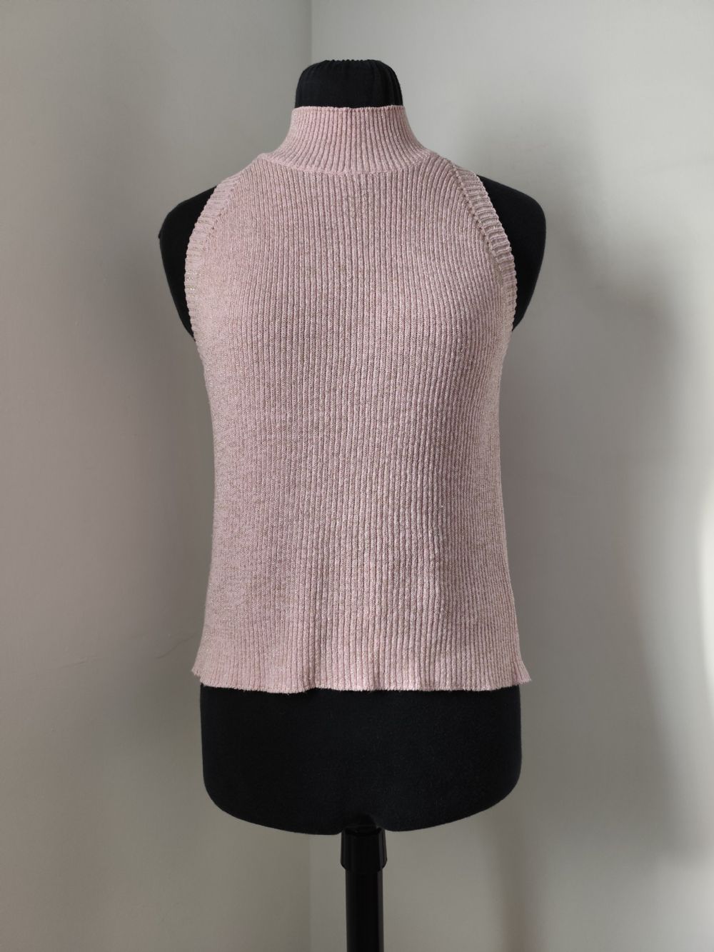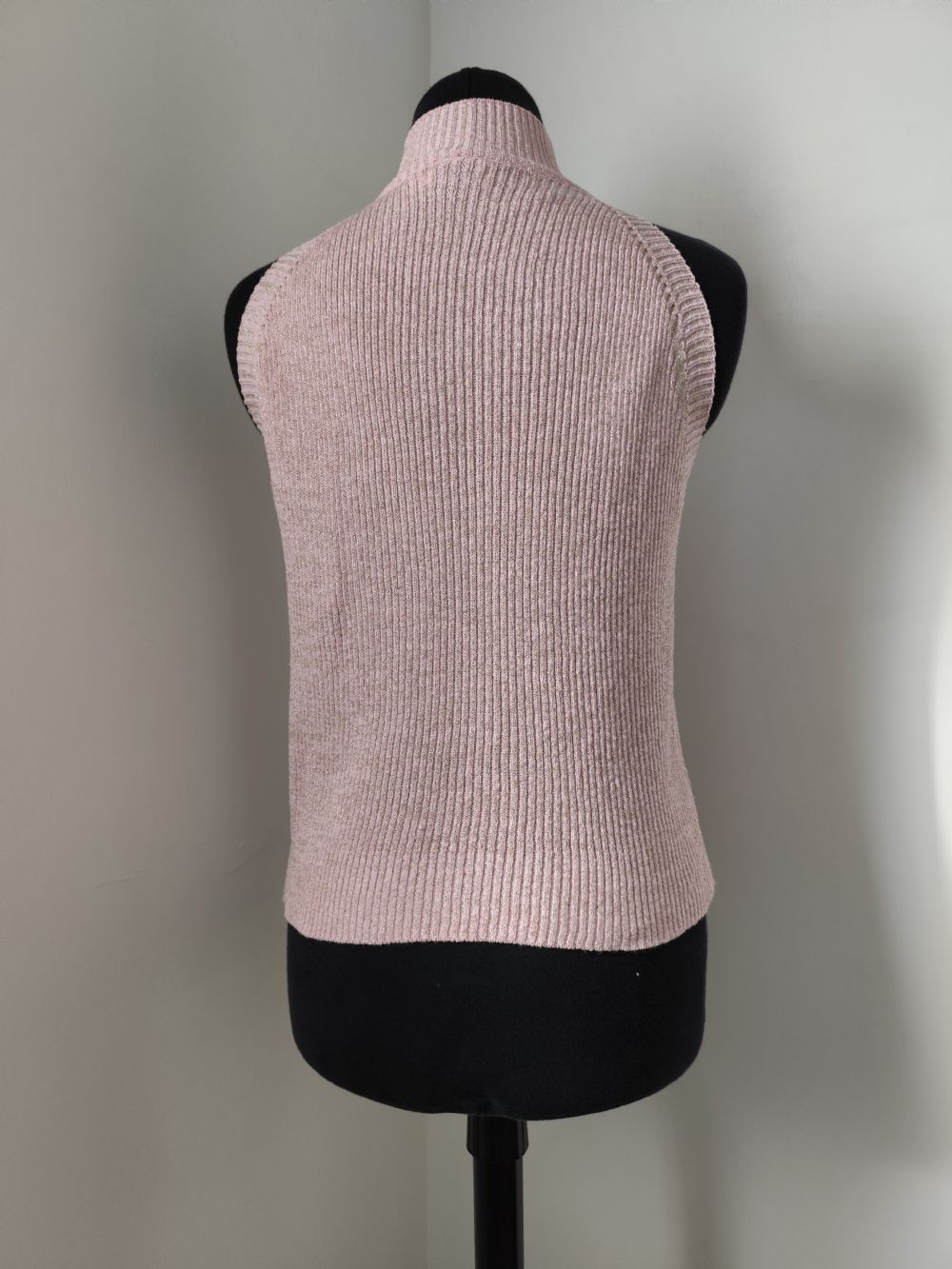 Descrizione:Gilet in maglia a collo alto rosa con filato in lurex, made in Italy. Modello con giromanica e scollo all’americana, lavorazione a coste che lo rende elasticizzato e aderente al corpo. In perfetto stato, si adatta a diversi outfit e fisicità.