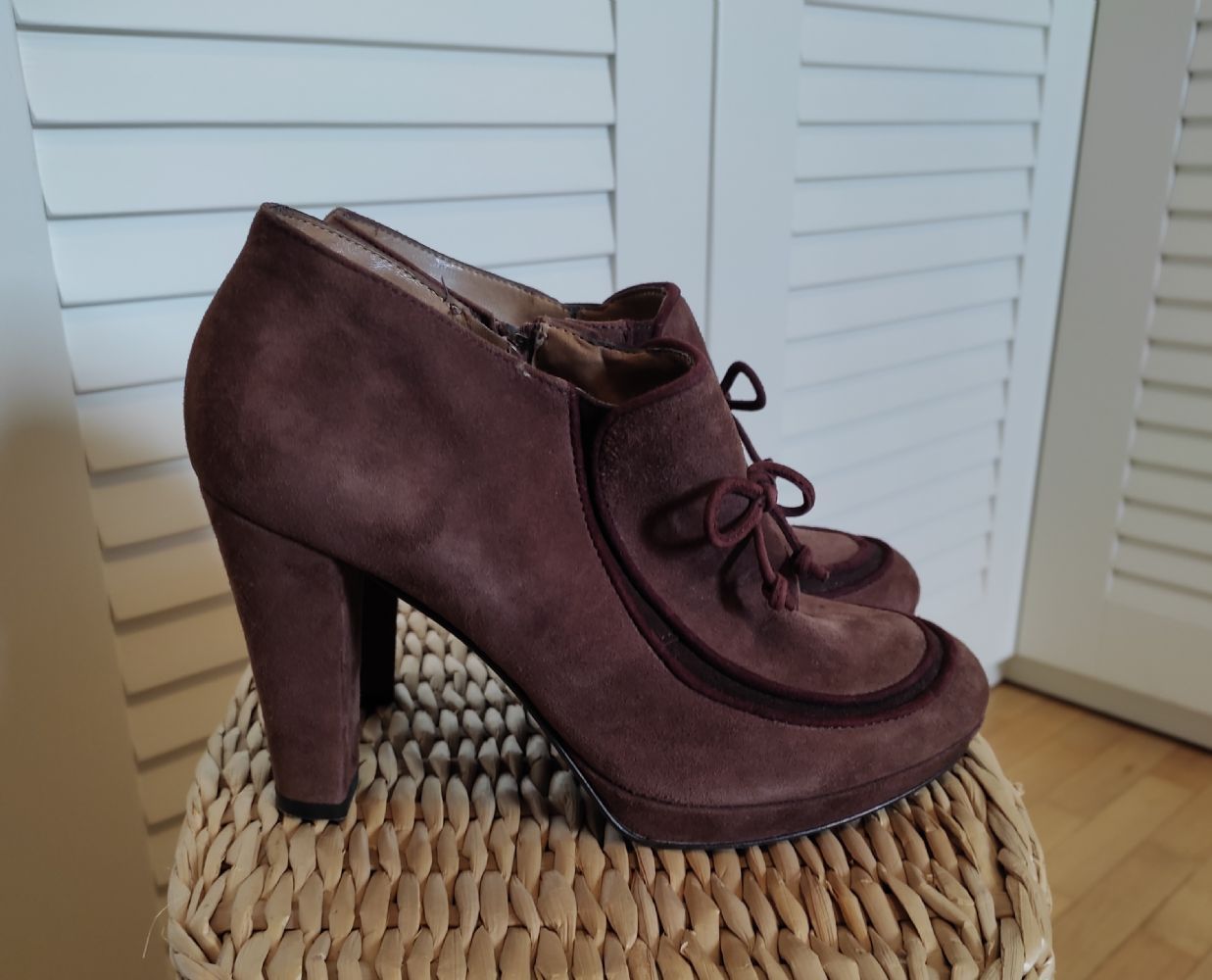 Descrizione:Scarpe Pittarello modello francesina, n. 38 in vera pelle scamosciata colore marrone glacé,