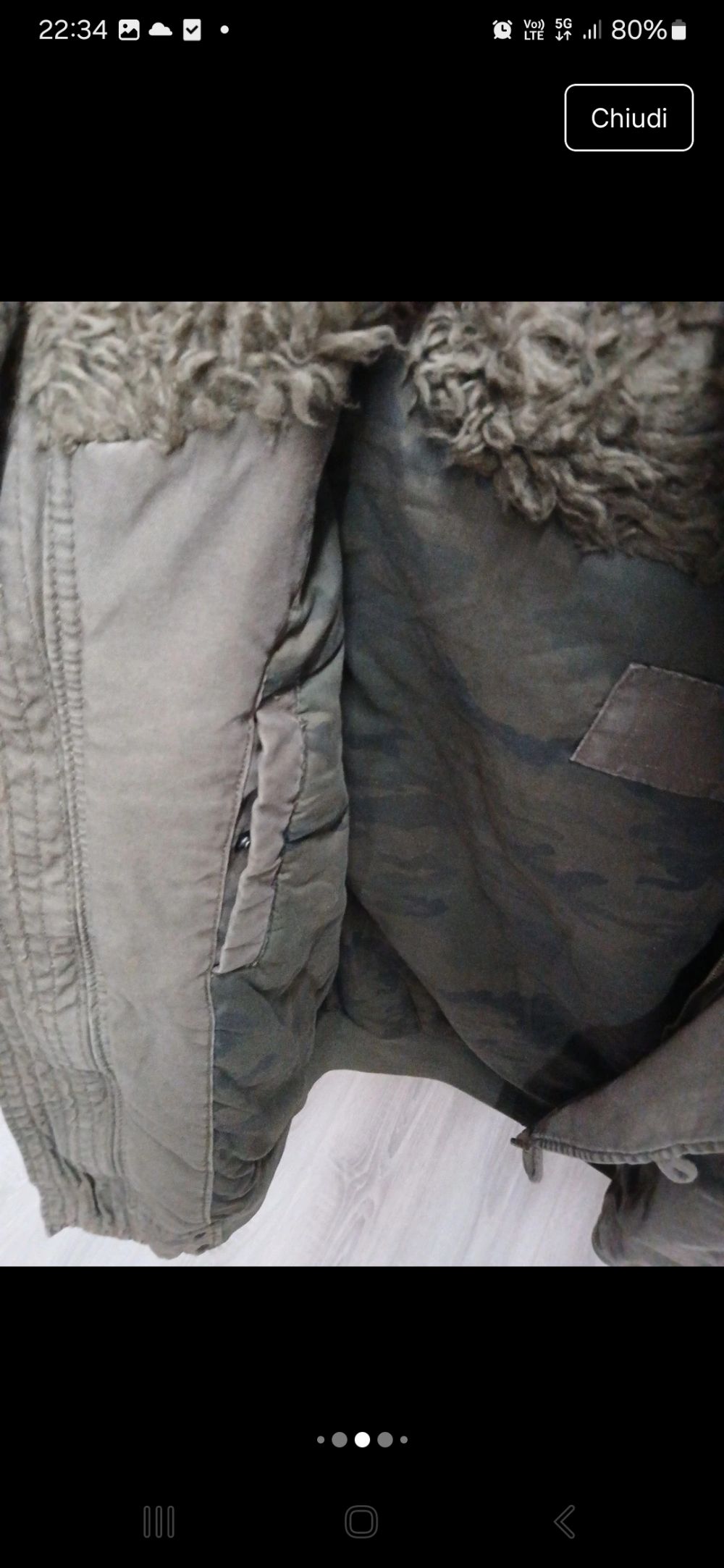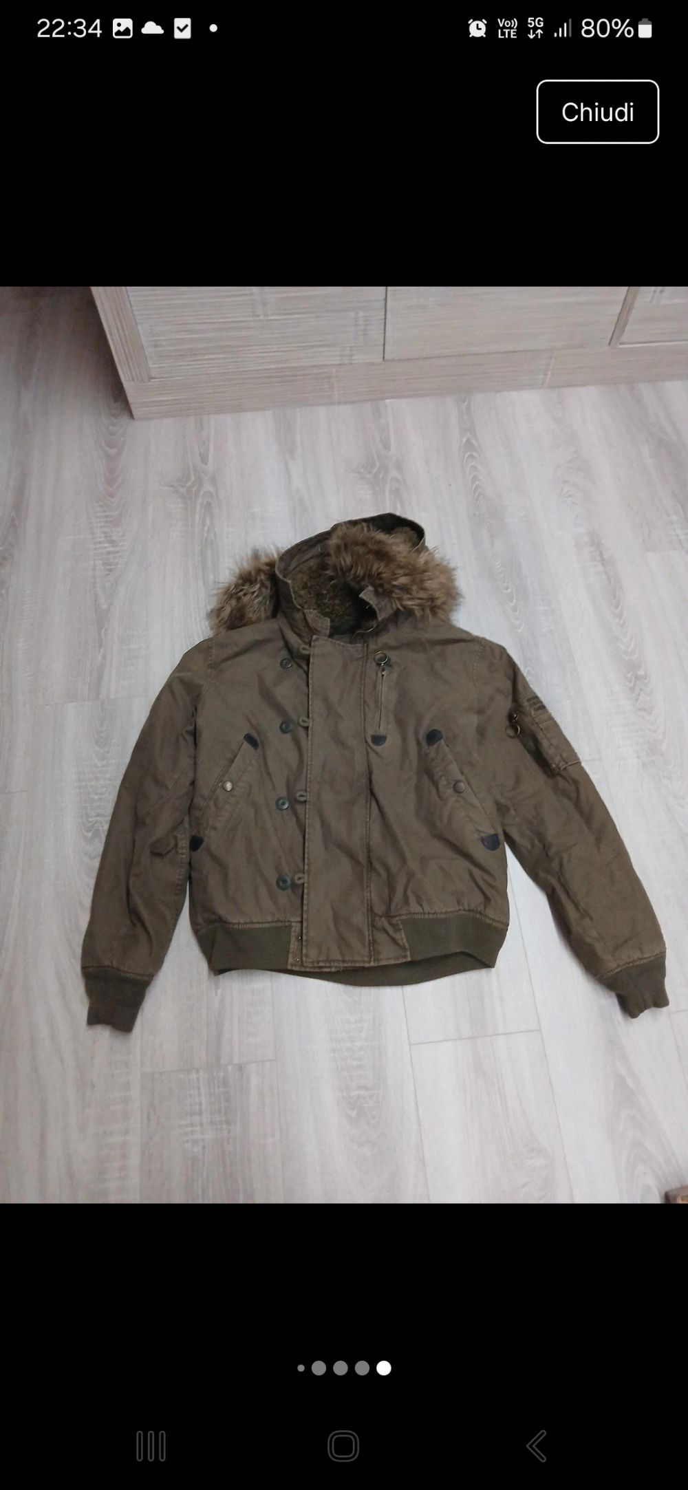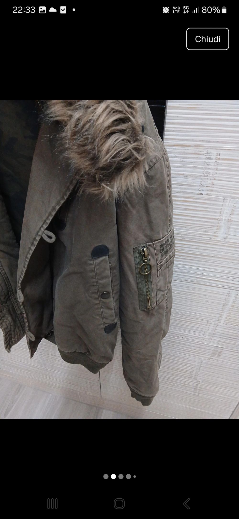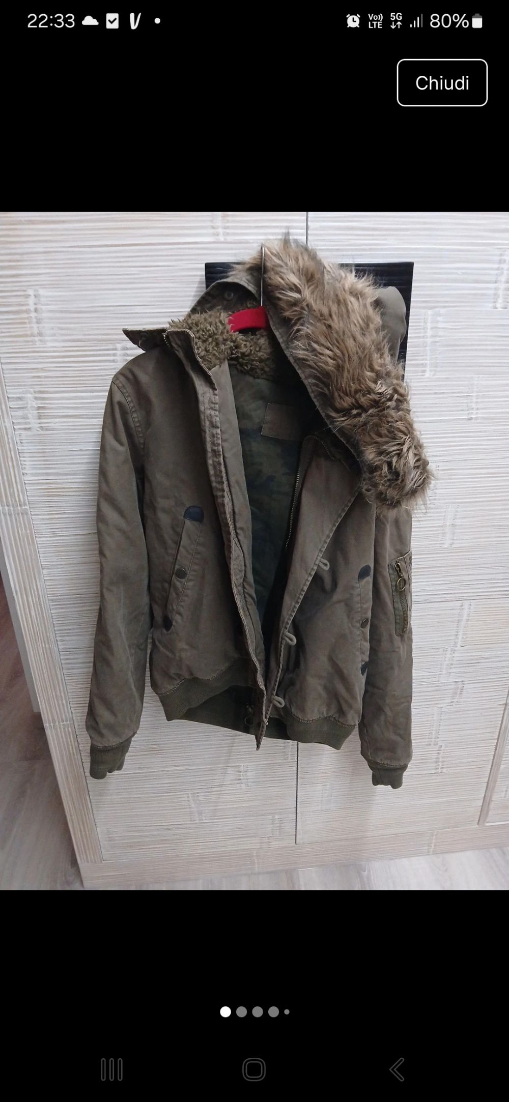 Giubbotto tipo parka con cappuccio. Ottime condizioni. Non ha taglia e composizione. Misure spalle 50 cm e lunghezza 60 cm. La spedizione partirà a gennaio