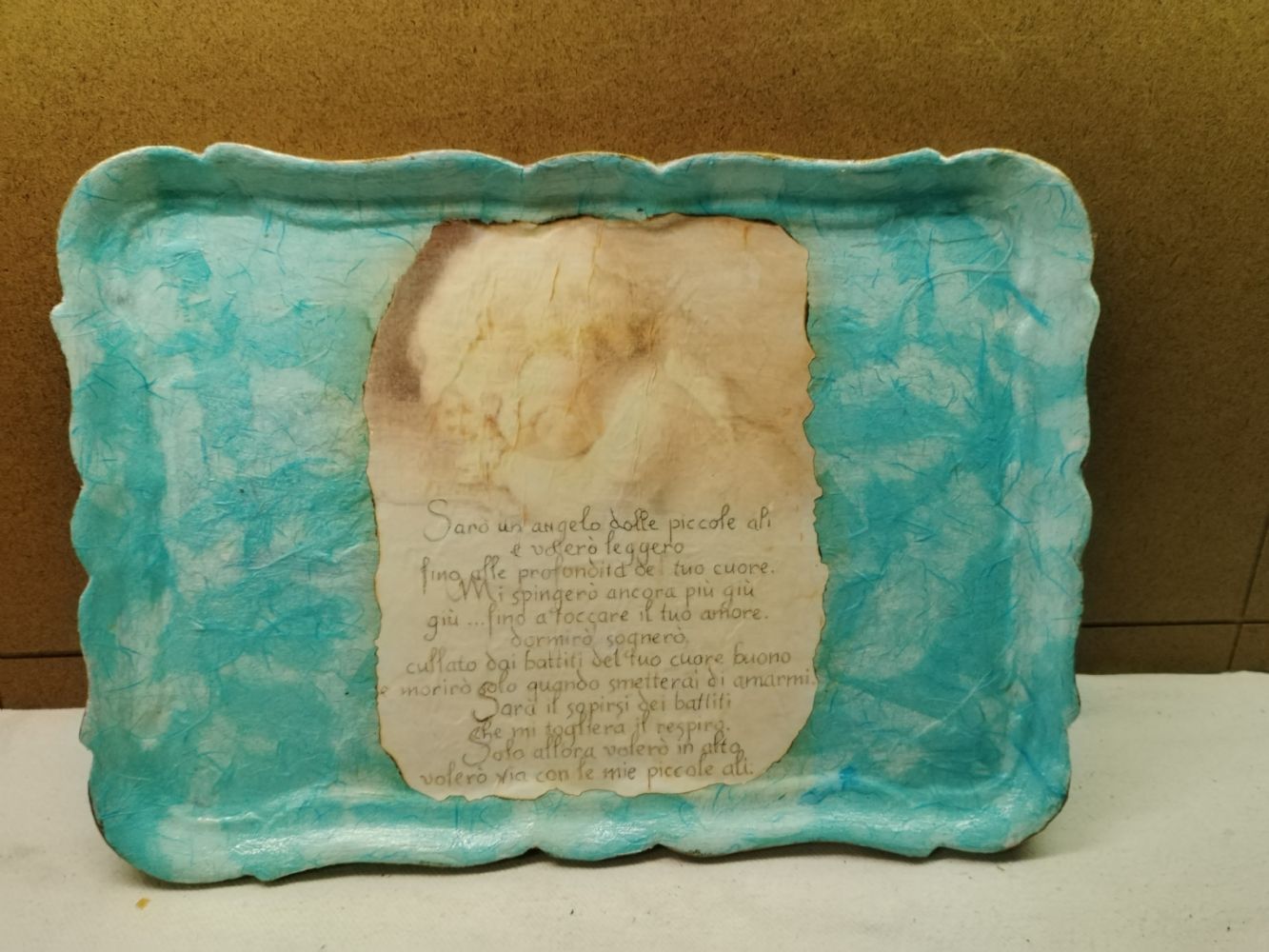 Vassoio azzurro in legno con poesia Dimensioni 36 x 26