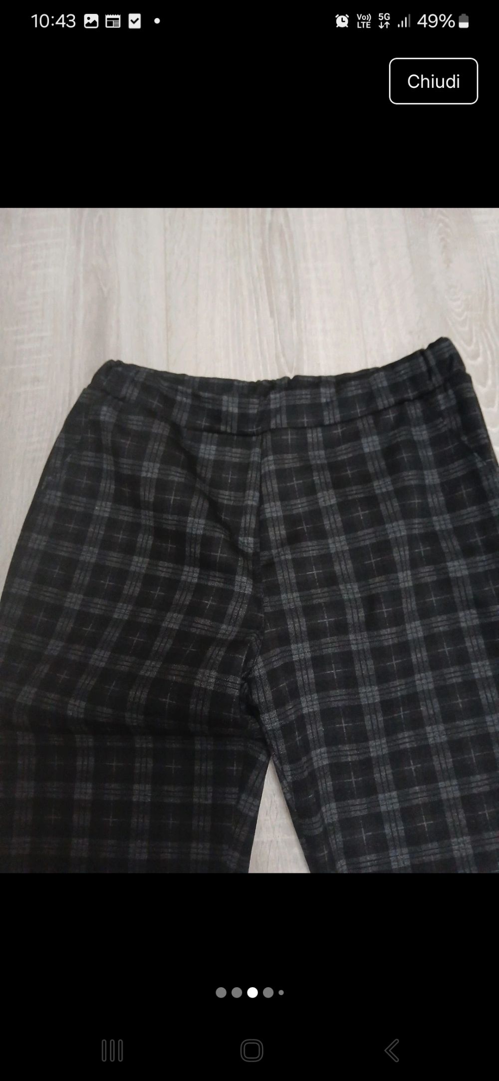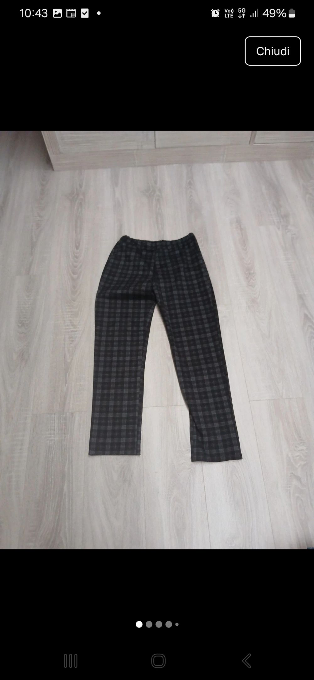 Descrizione:Pantaloni a quadretti TG. M. Vestono una TG. 42/43. Anche questi purtroppo non mi entrano più. 95% viscosa e 5% elastan. Collettiva in partenza a gennaio