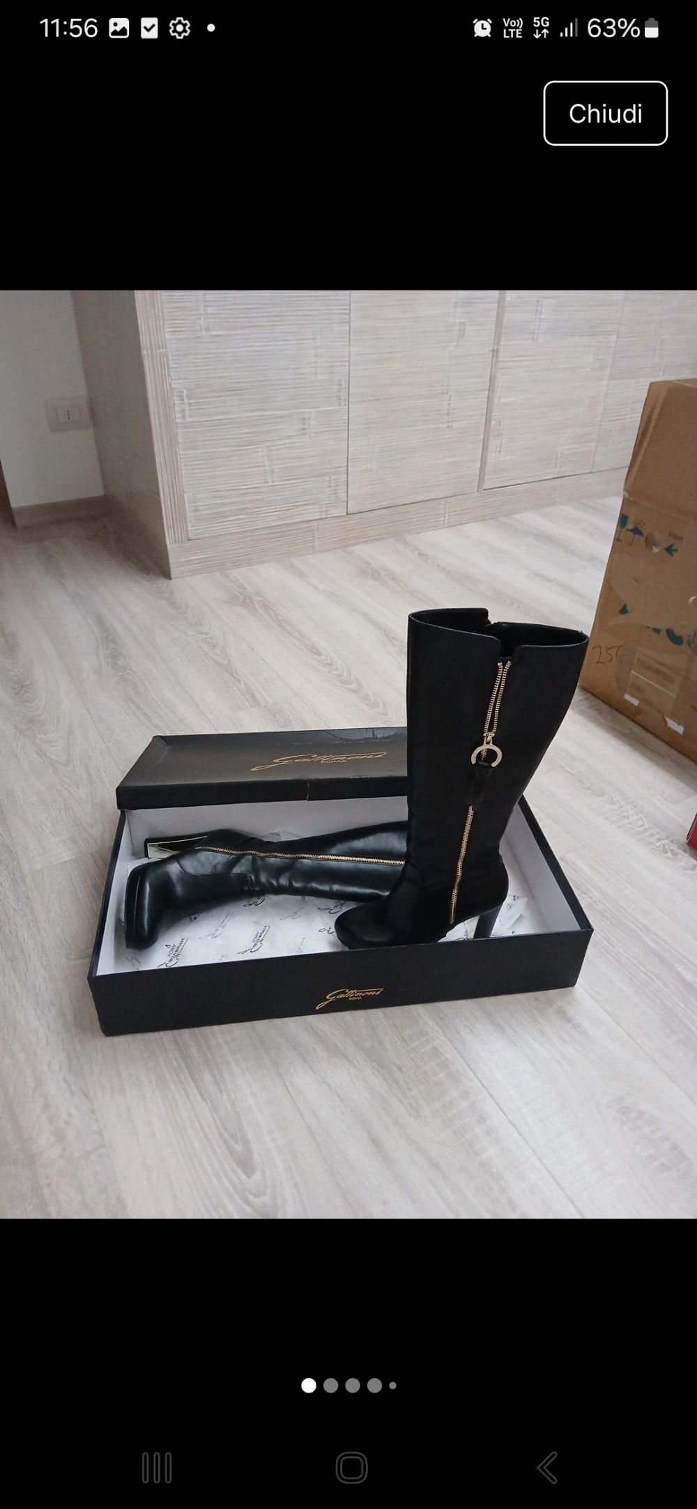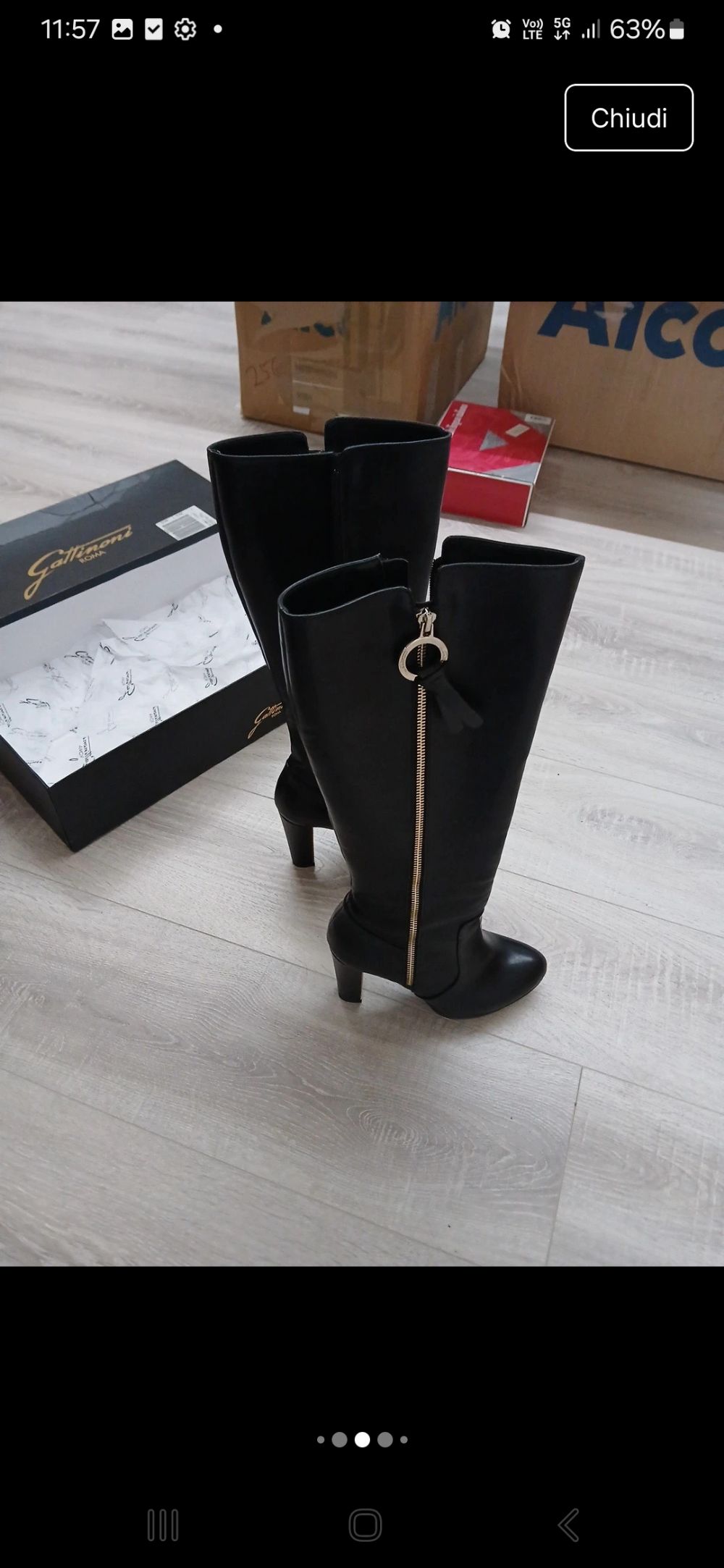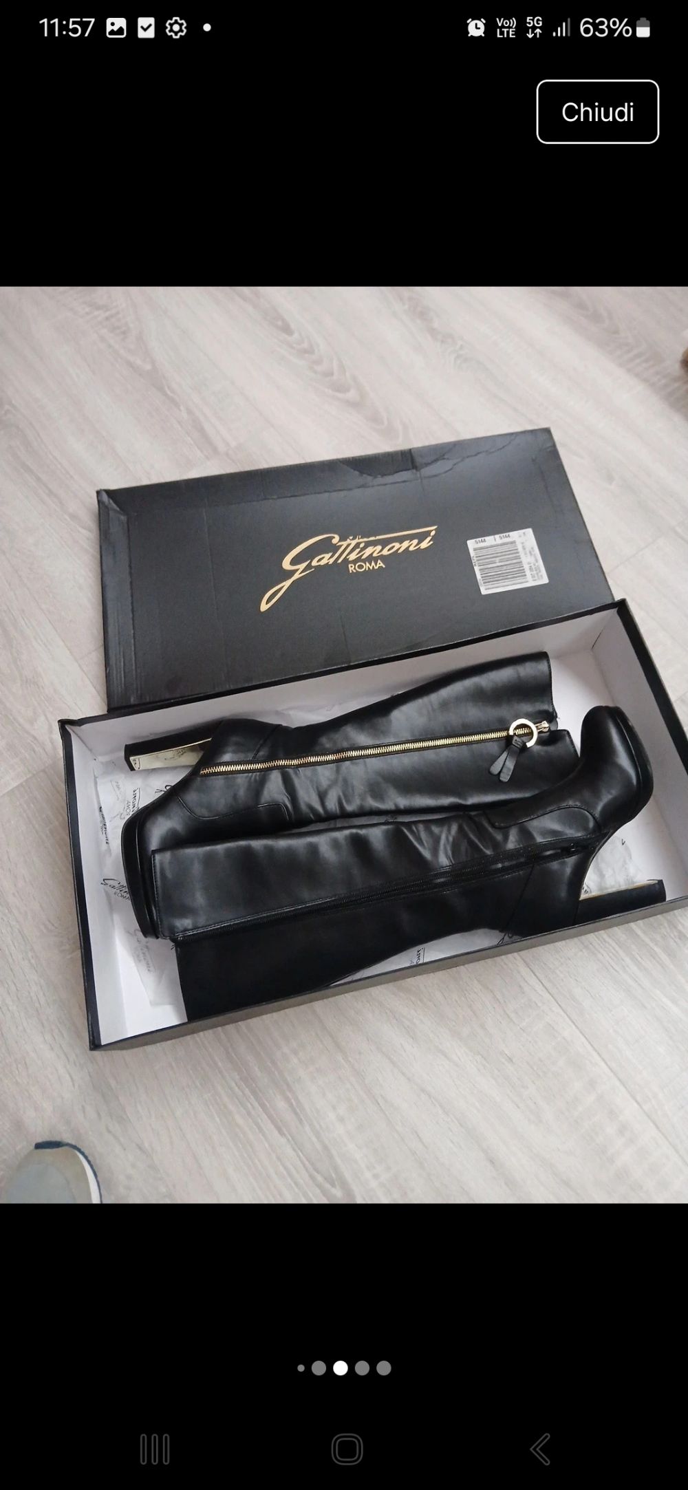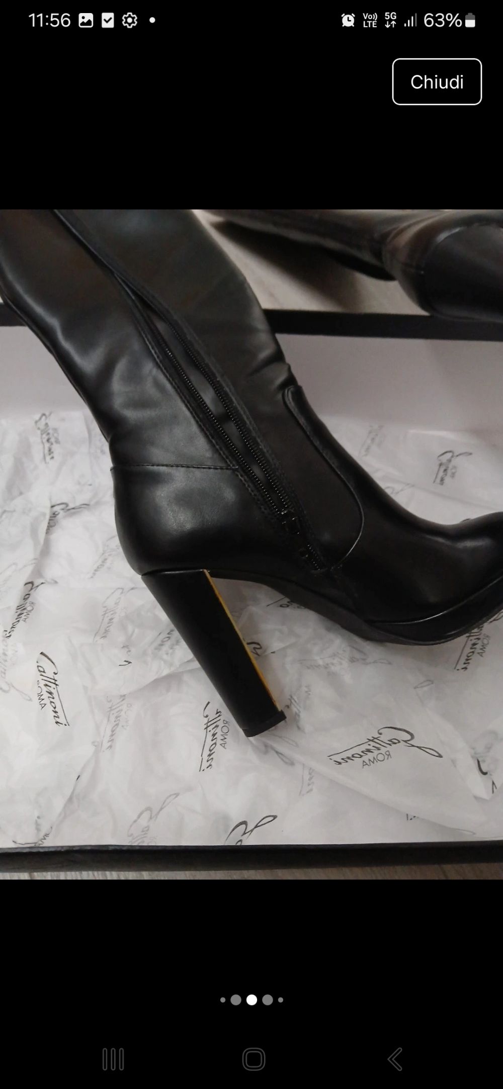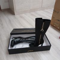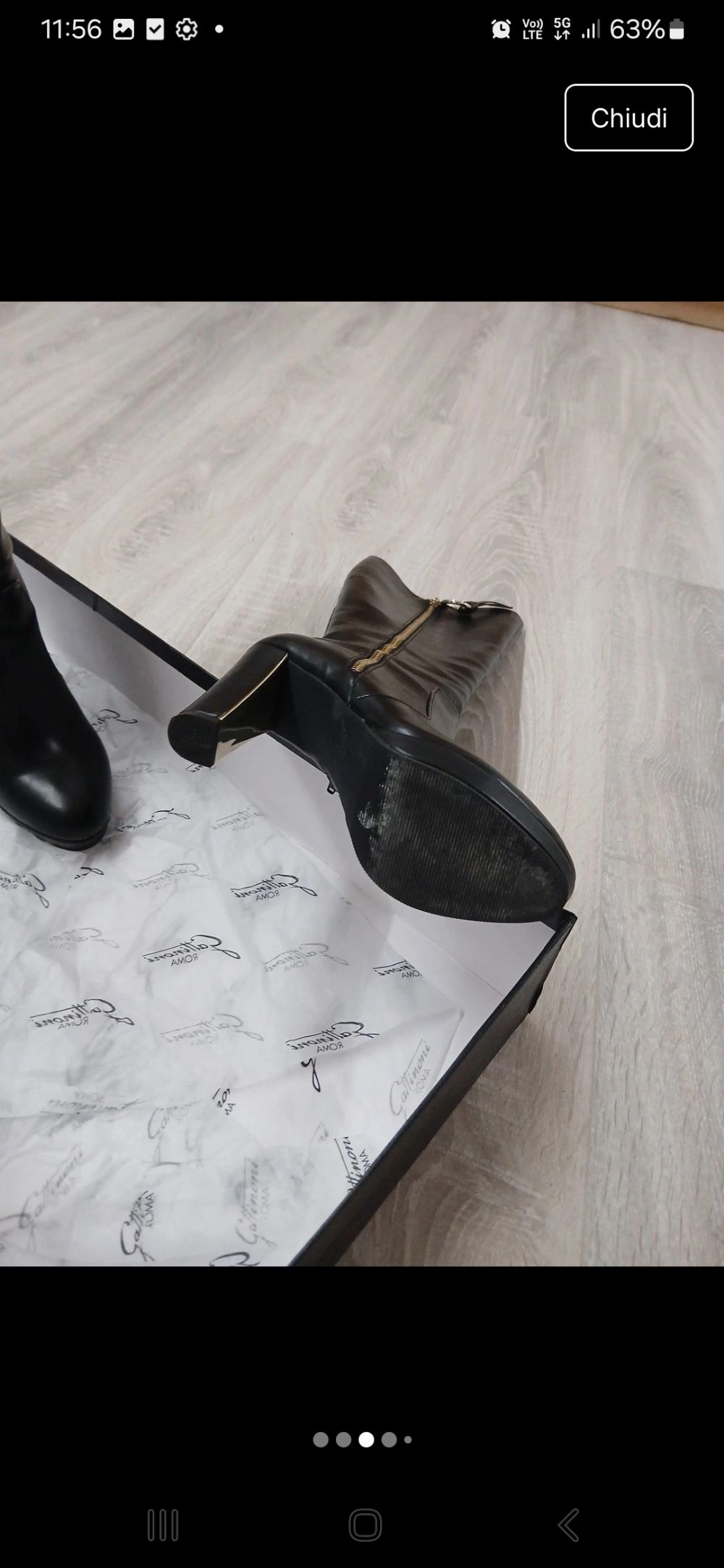 Descrizione:Stivali Gattinoni Roma n. 37. Usati solo una volta. Non mi si chiudono più al polpaccio. Ottime condizioni. Scatola originale. Tacco 10 cm. Finta pelle. Interno tacco a specchio color oro. Spedisco in collettiva a gennaio