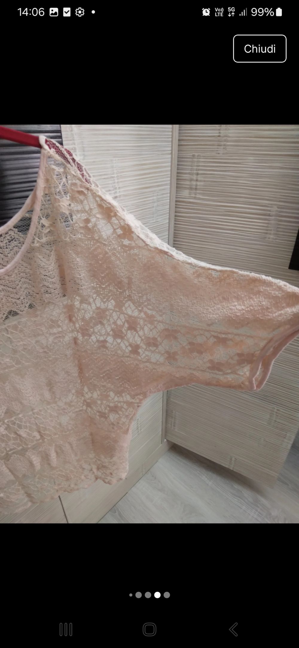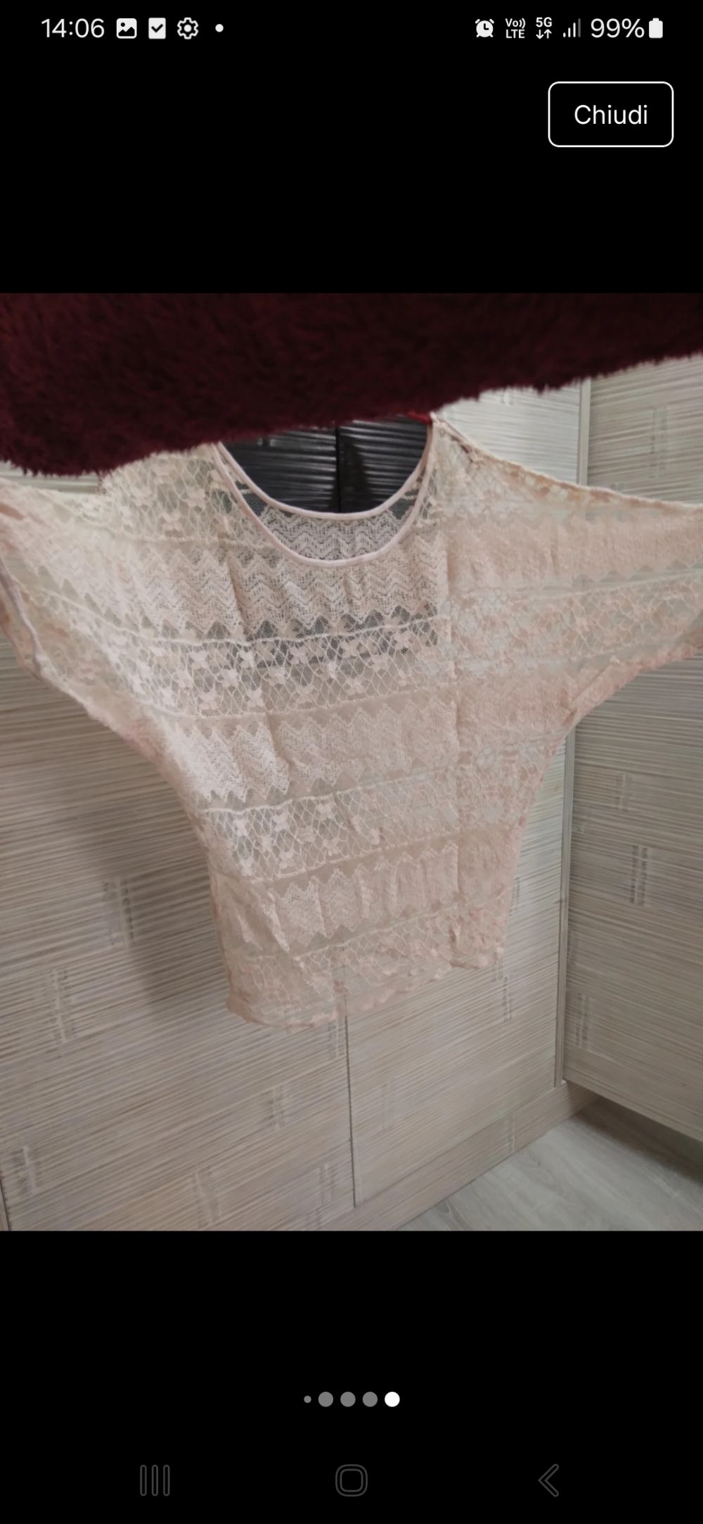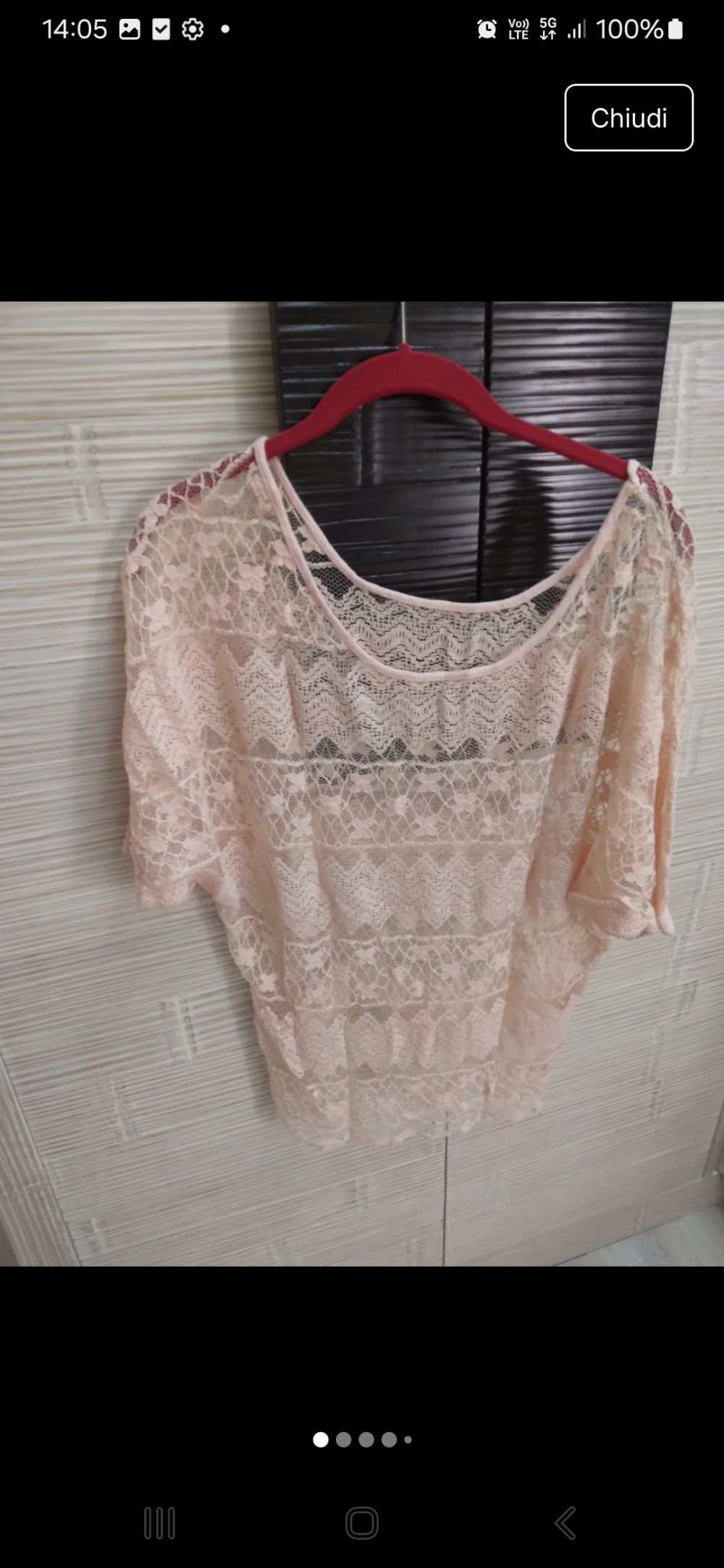 Descrizione:Maglia leggera traforata color cipria. Maniche corte a pipistrello. Direi TG. M/L. Non c'è composizione. Spalle 42 cm e lunghezza 58 cm. Collettiva in partenza a gennaio