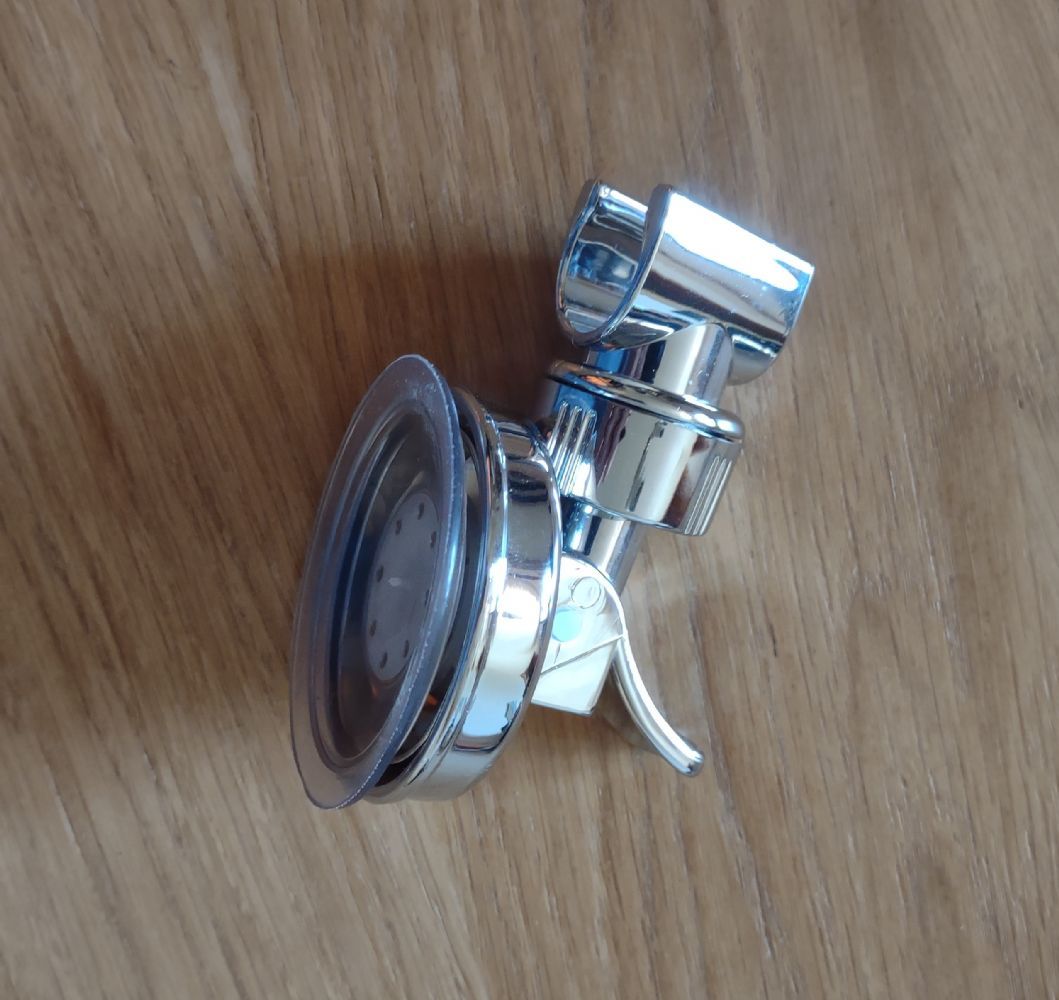 Supporto con ventosa da fissare sulla parete di box doccia o vasca per appendere il soffione. Nuovo