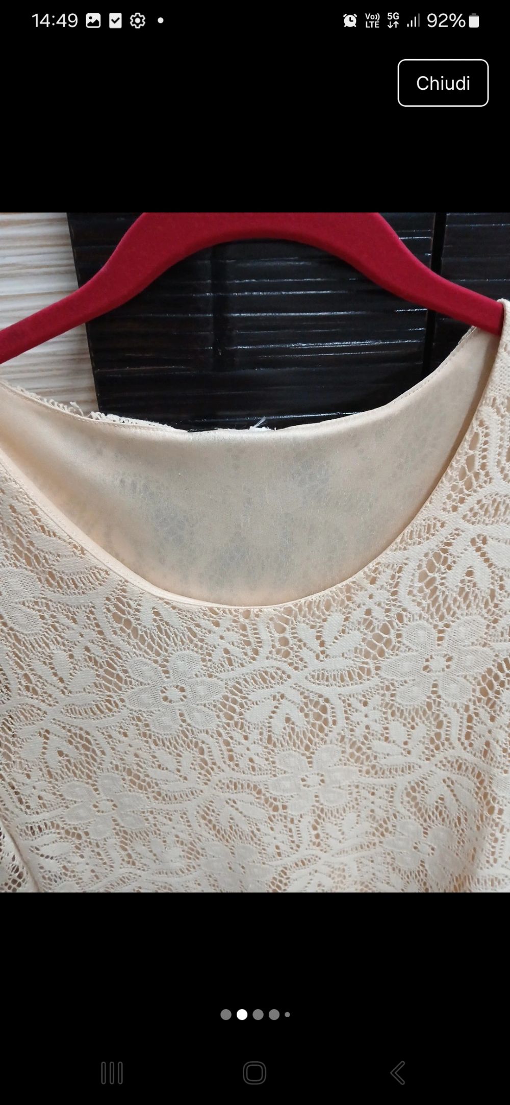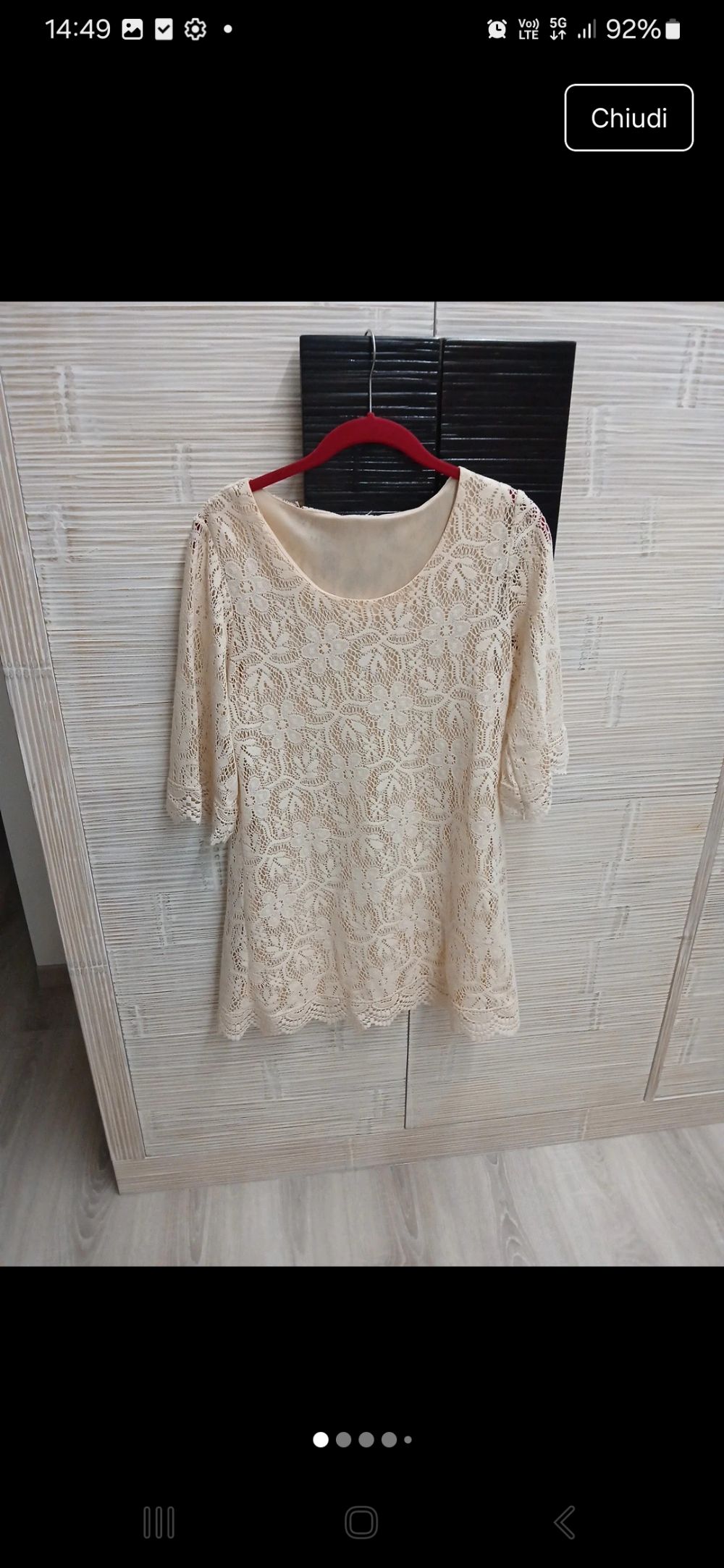 Descrizione:Abito traforato con sottoveste. TG. M. Cotone e poliestere. Color crema. Maniche a 3/4. Marca h&m. Ottime condizioni. Spedisco in collettiva a gennaio