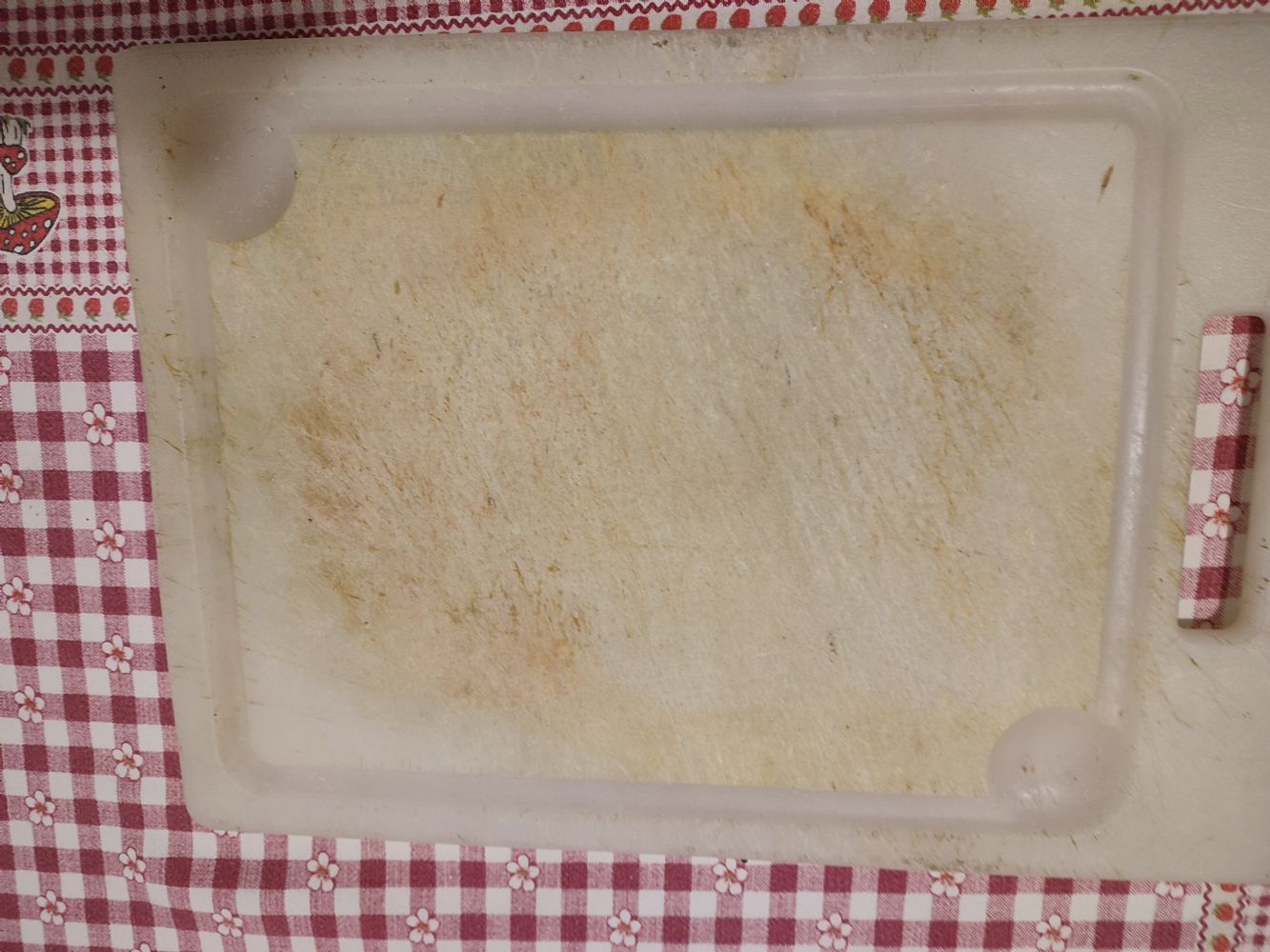 Descrizione:Vecchio tagliere in plastica dura, misura 27x39. Ormai da buttare ma può essere utile per altro