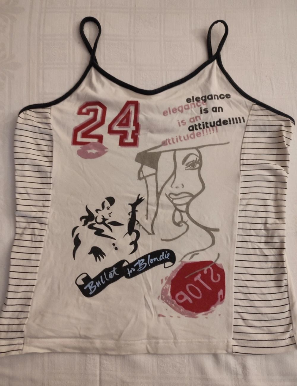 - Grafica con viso e scritte elegance is an attitude e Bullet for Blondie.