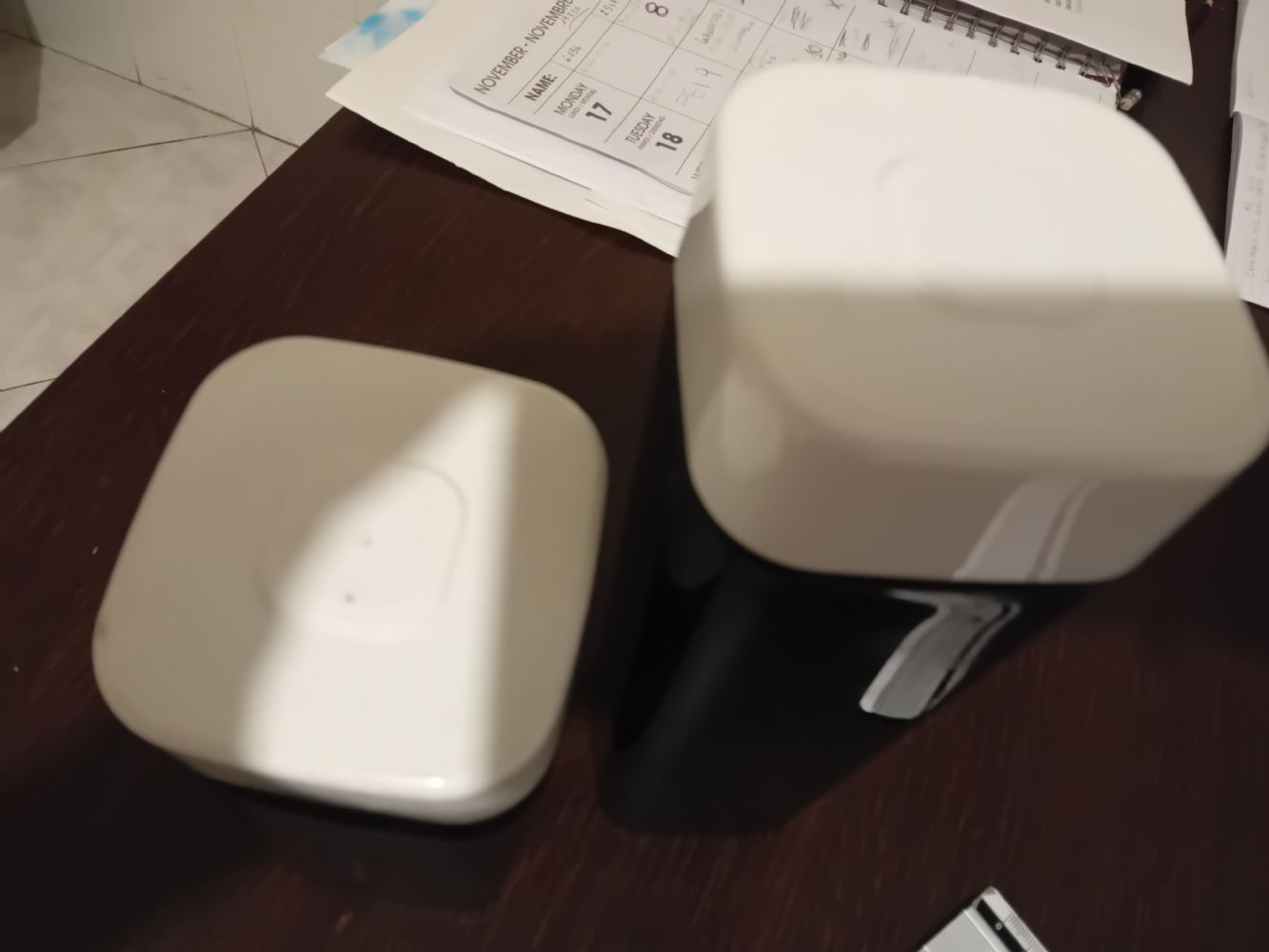 Due barattoli in plastica dura, neri con tappo bianco (credo ermetico)