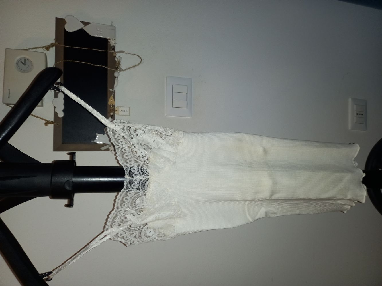 Canottiera in cotone, con pizzico al seno, spalline sottili in raso, lunghezza totale cm 70 abbondanti.