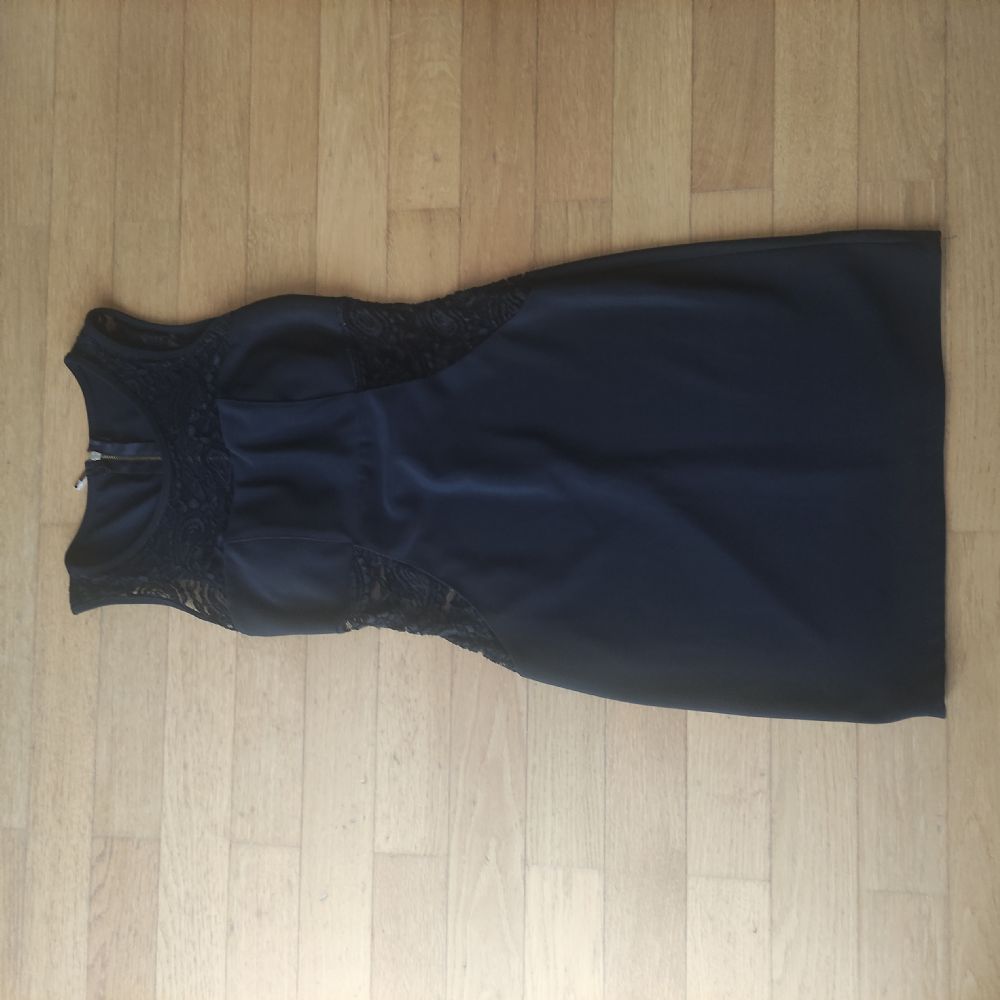 Abito nero, con pizzo laterale, aderente e sexy, veste piccolo xs s