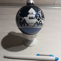 Descrizione:regalo pallina blu con paesaggio dipinto in bianco