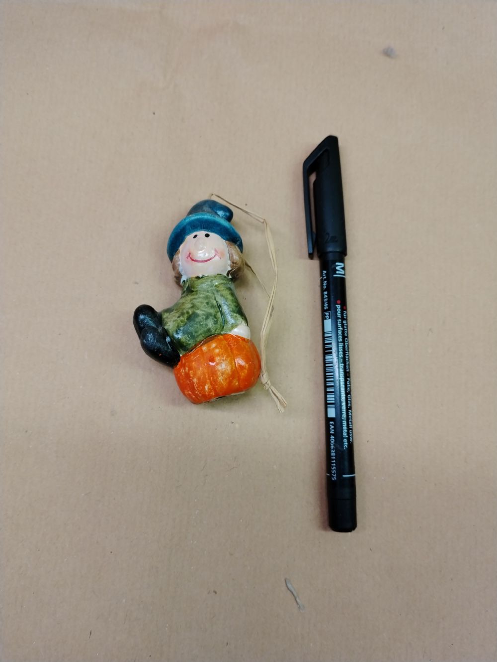 Streghetta con zucca di ceramica La penna serve come comparazione