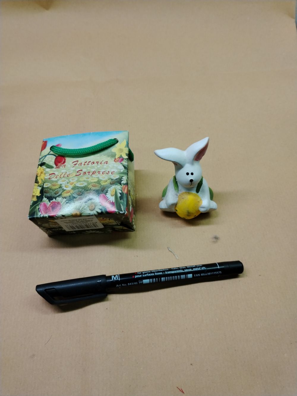 Coniglietto bianco in ceramica Penna per comparazione dimensioni
