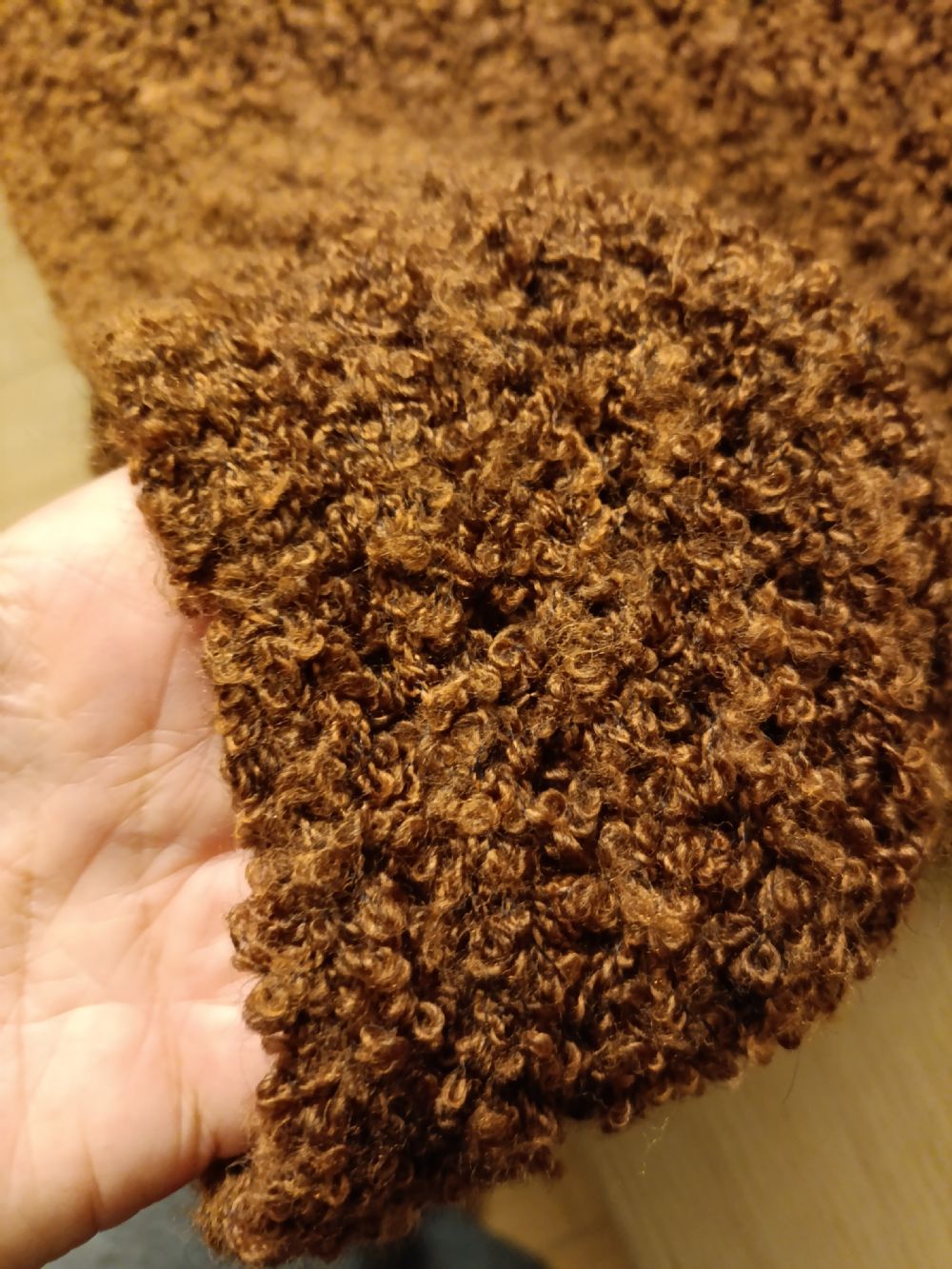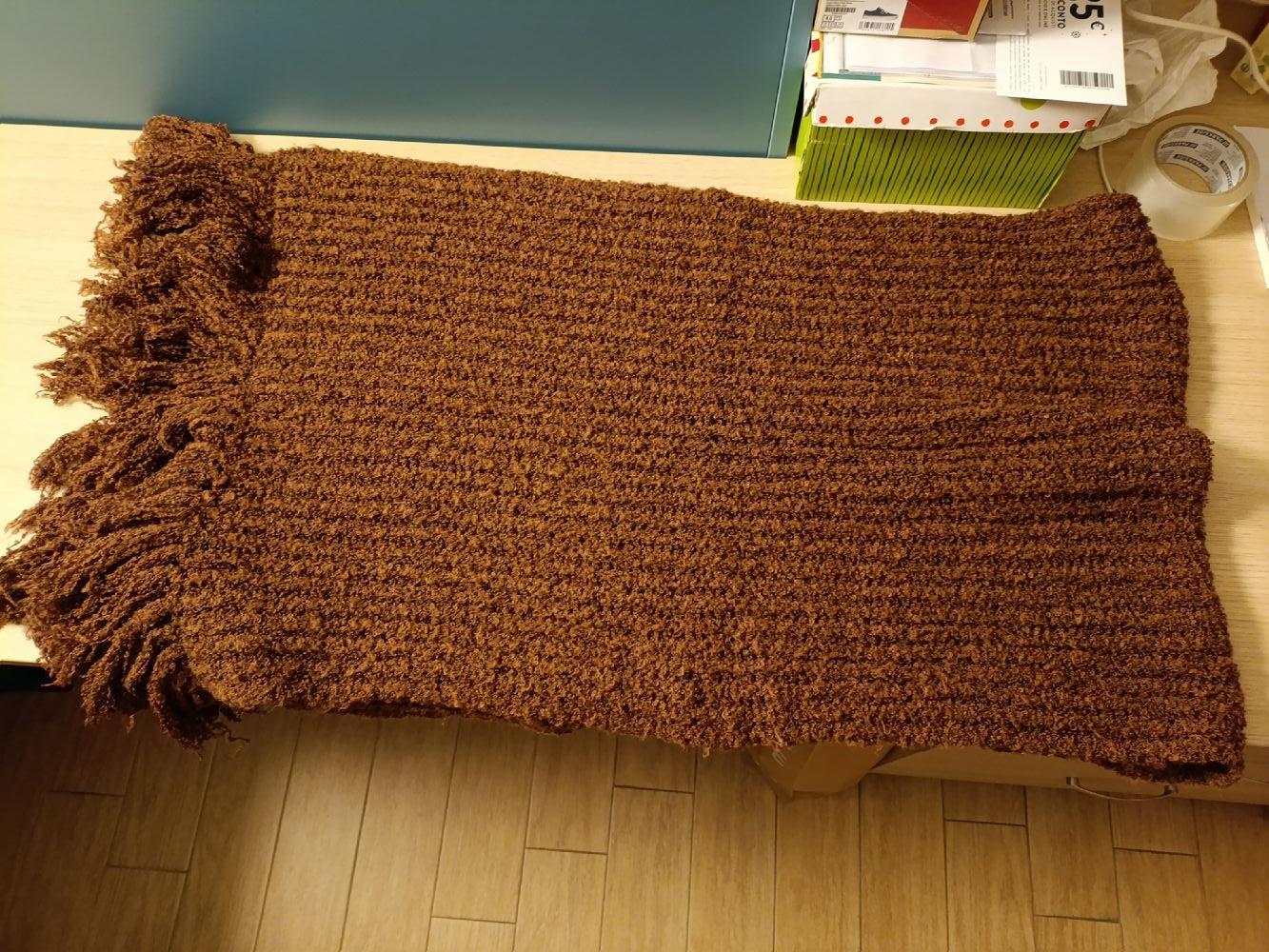 Descrizione:Grande sciarpa/scialle in lana marrone bouclé, fatta a mano, mai usata ma da tempo nell'armadio quindi metto usato poco. 54x200 cm frange comprese