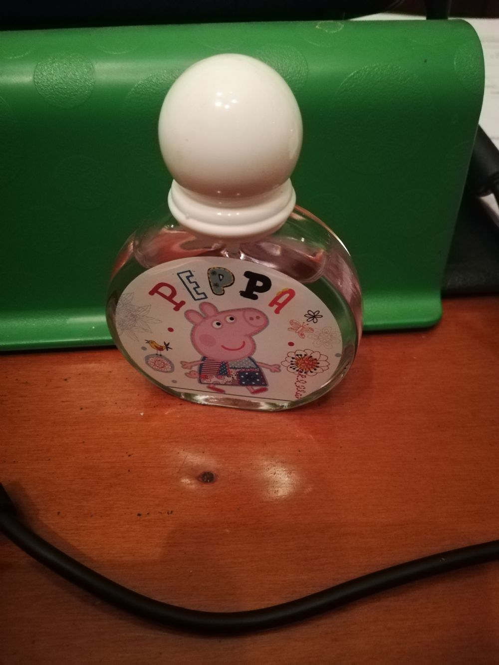 :Profumo peppa pig da 50 ml. Manca la scatolina esterna ma il profumo è nuovo. Solo sentito il profumo molto dolce fruttato