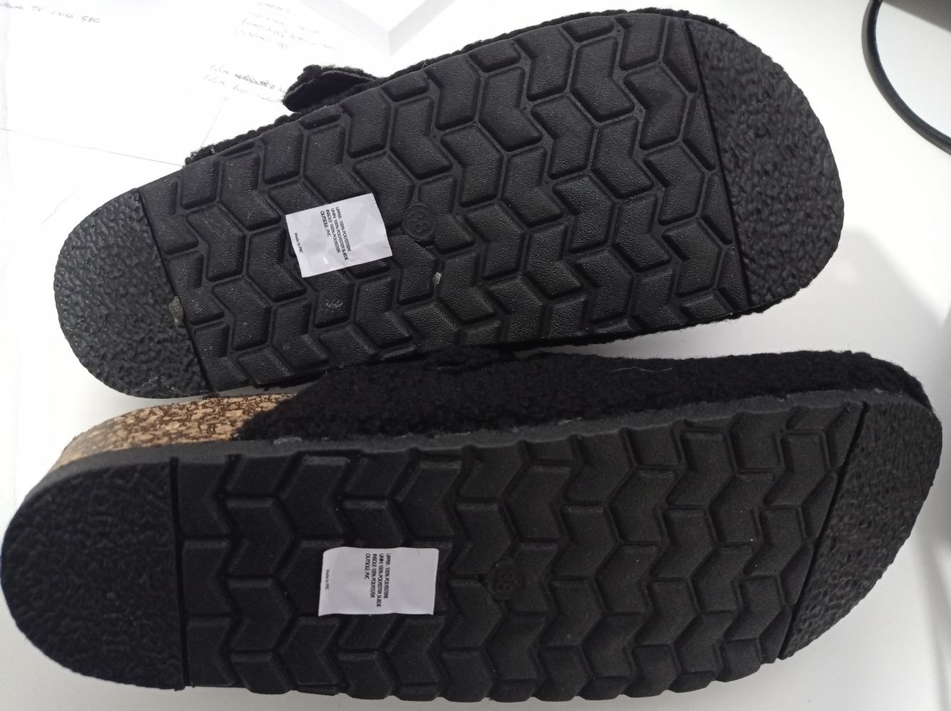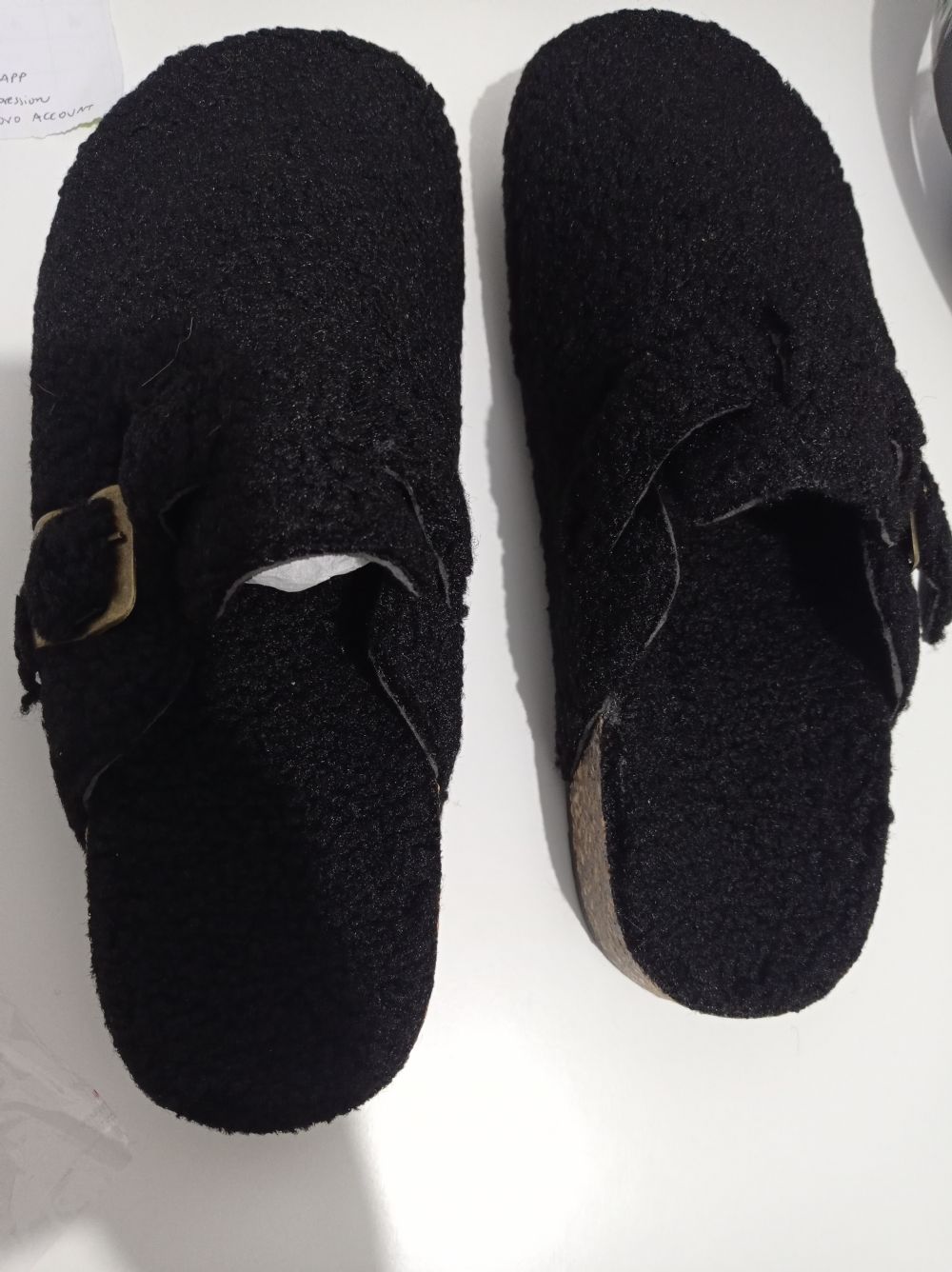Completamente coperte da pelo corto (in poliestere), suole in PVC, zeppa 3,5cm