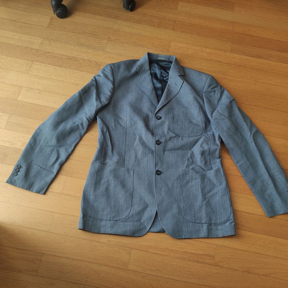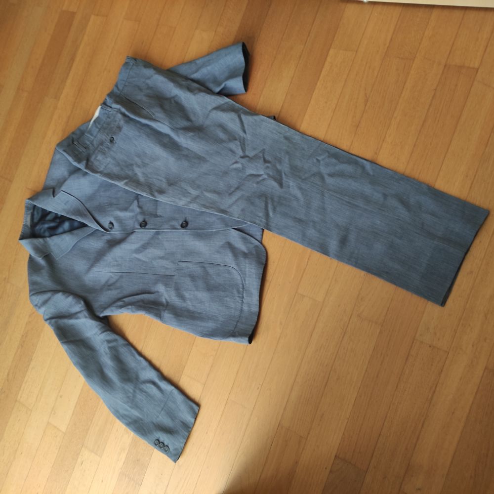 Completo uomo, taglia 52, colore carta da zucchero, in misto lino. È molto bello e fresco ma nel pantalone dietro si è acucito