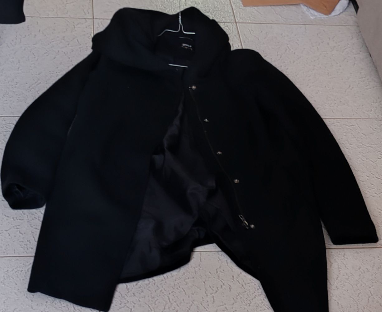 Descrizione:Giacca donna nera, invernale tipo panno con cerniera e bottoni a pressione. Media lunghezza taglia M. Buone condizioni marca only 85 poliestere 15 cotone