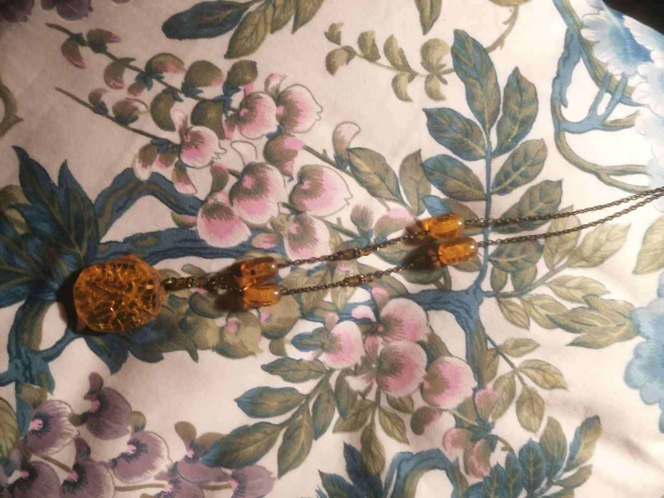 Descrizione:Collana di finta ambra, carina. Arriva al seno.