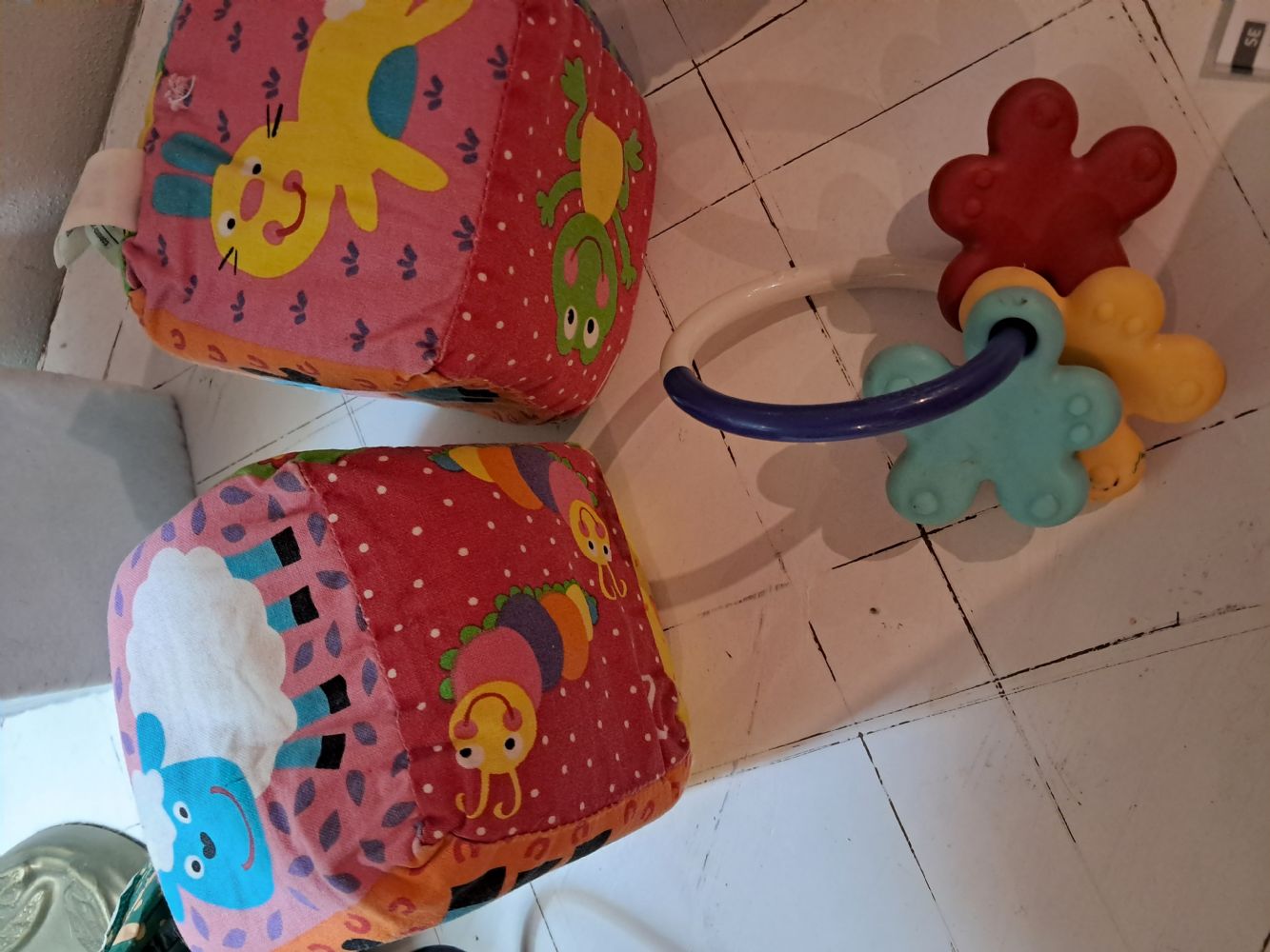 Descrizione:2 cubi morbidi, lavati. Uno è anche sonaglio.