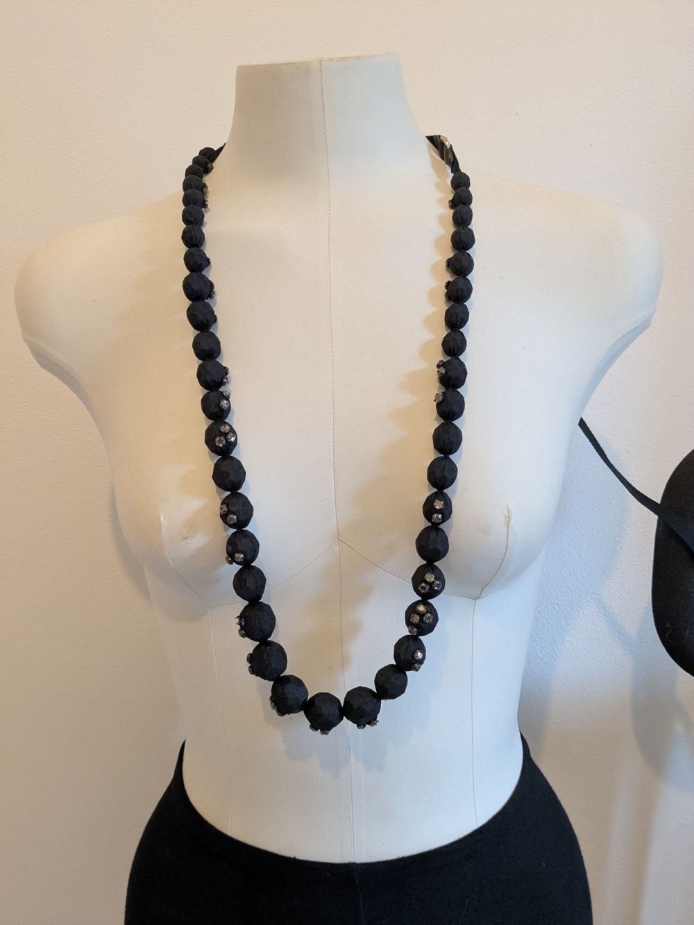 Descrizione:Realizzata a mano, può essere una collana oppure una cintura, è lunga in totale 2 mt.