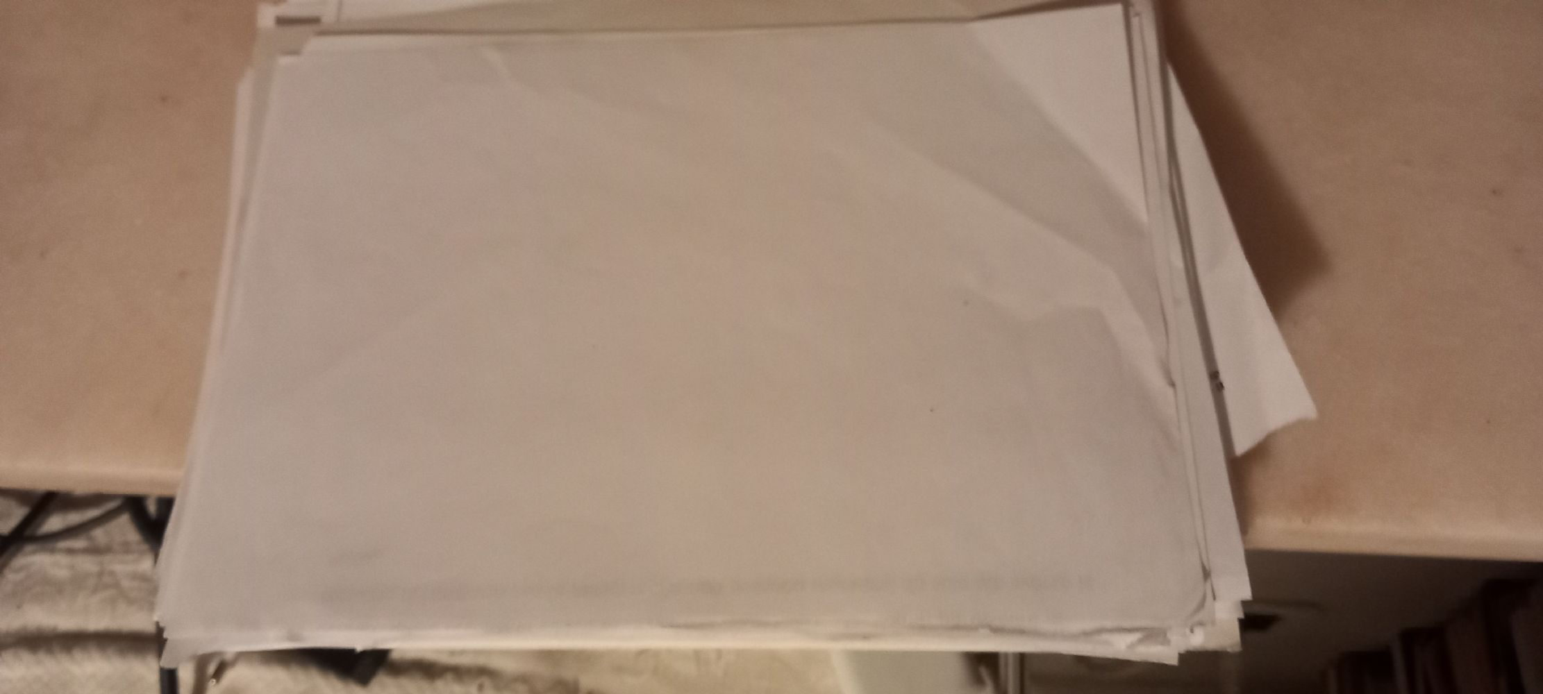 Descrizione: 150 fogli bianchi, in alcuni una riga sul retro, che non ne pregiudica l' utilizzo sul retro, da recupero di fogli A 4 usati solo nella parte alta