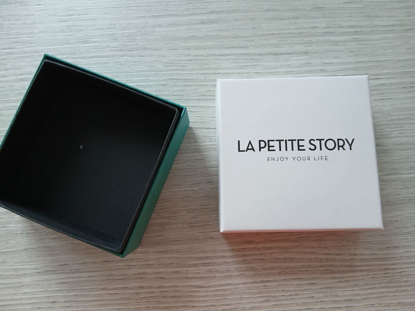 Descrizione:Marca " La petite story Enjoy your life", in cartone, parte bassa in colore verde acceso, coperchio bianco. Dimensioni altezza complessiva 4,5 cm, altezza utile interna circa 3 cm, profondità e lunghezza 10 cm ( ha forma quadrata), in ottime condizioni.