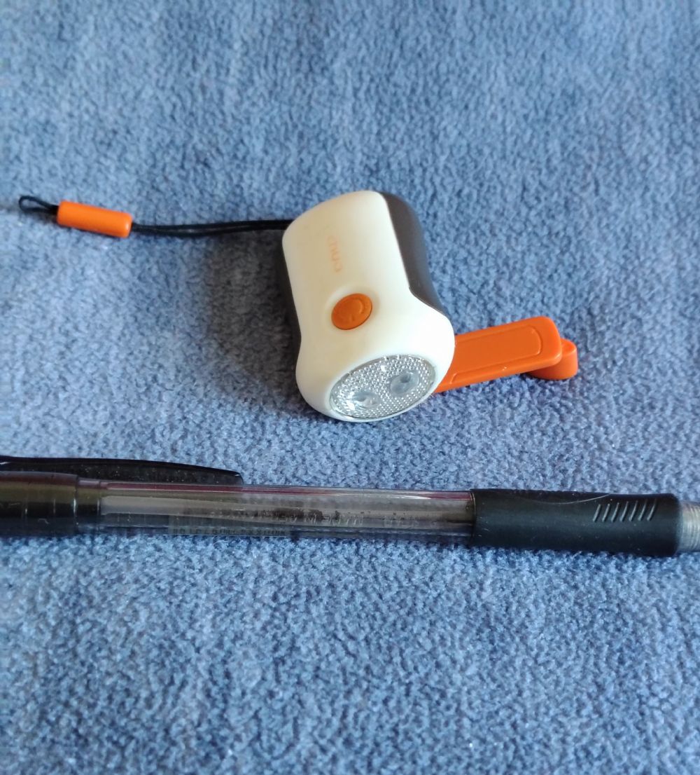 Descrizione:Mini torcia autoricaricabile con levetta marca Decathlon.