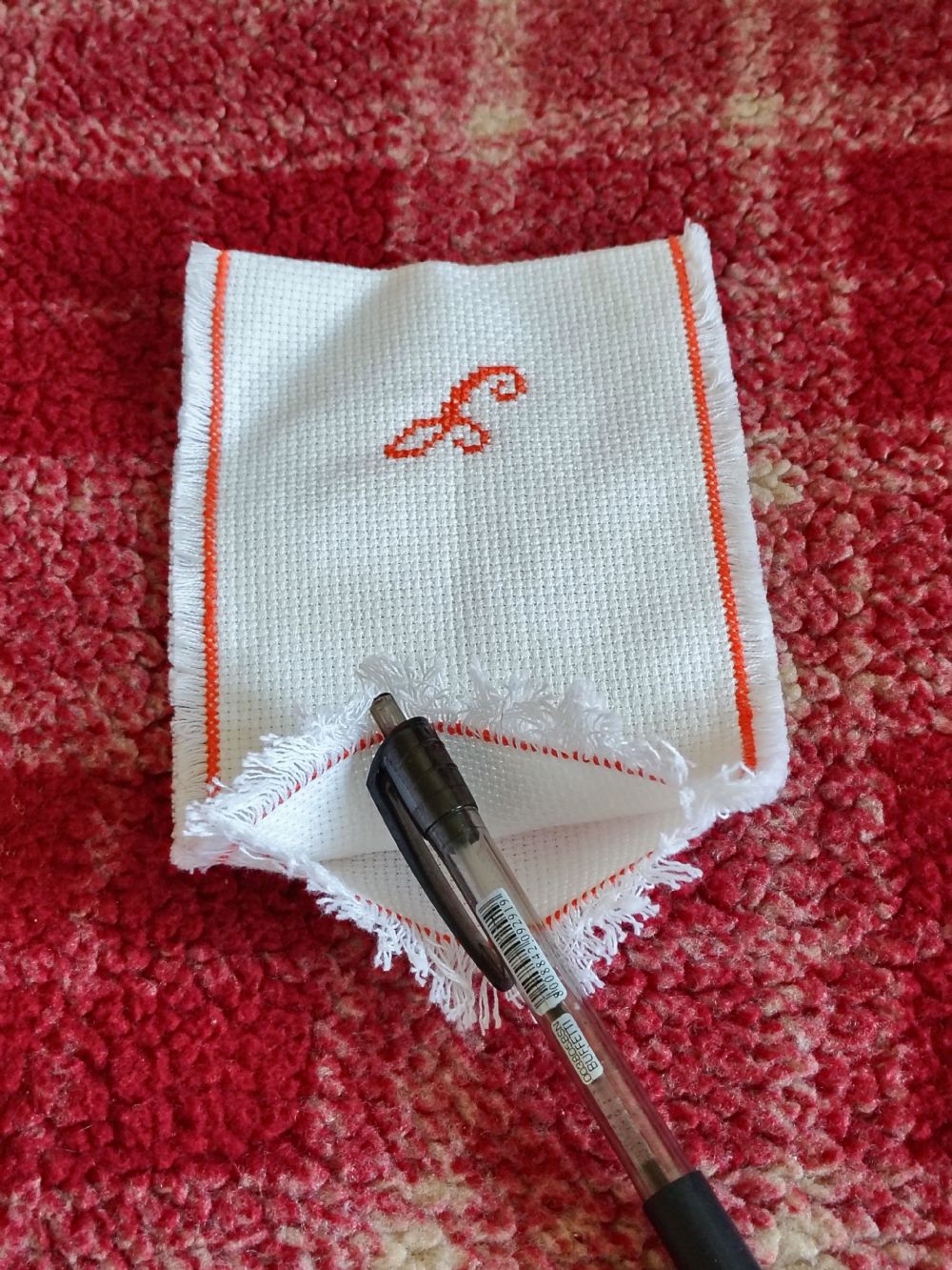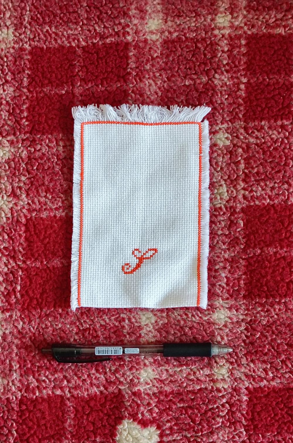Descrizione:Sacchettino in tela aida bianca ricamato a mano con lettera S color arancio. Misura 15 cm x 9,5 cm.