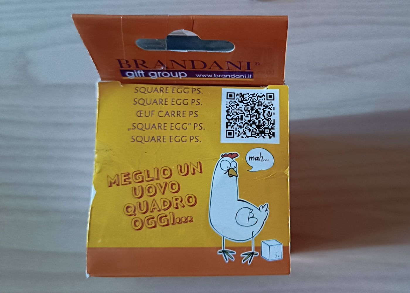 Stampo per uova quadrate della Brandani, gadget da cucina progettato per trasformare le uova sode nella forma di un cubo.