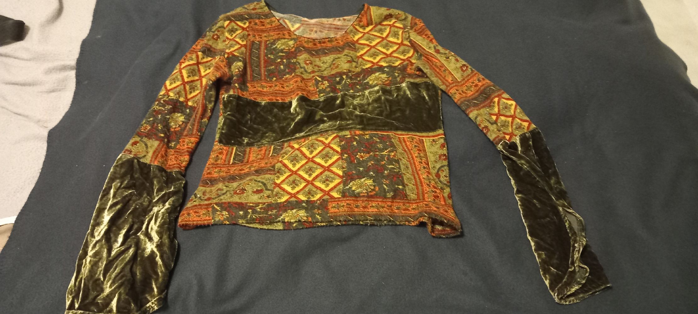 Descrizione:sintetica con maniche svasate di velluto, come fascia in vita