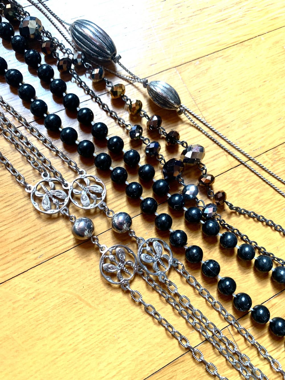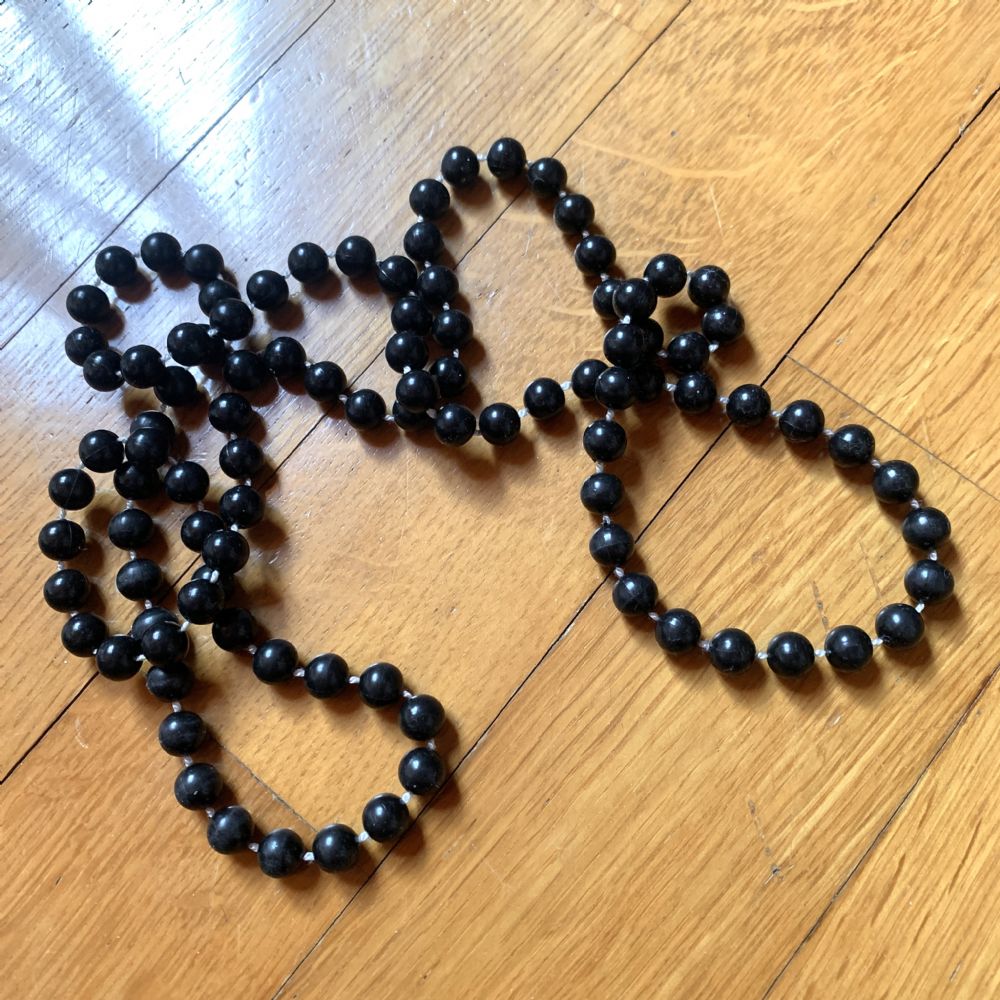 1- perle in plastica nere con filo bianco, lunghezza cm 41x2, senza chiusura