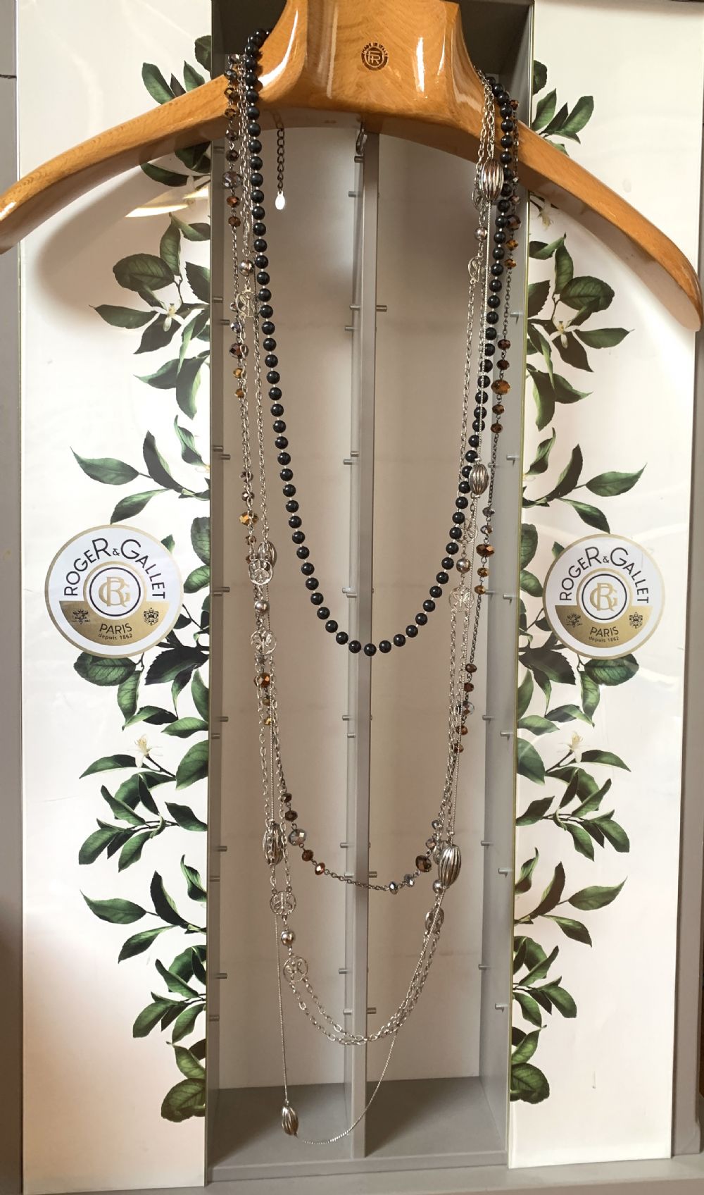 4- catena fine con elementi ovali color argento, lunghezza cm 75 x2.