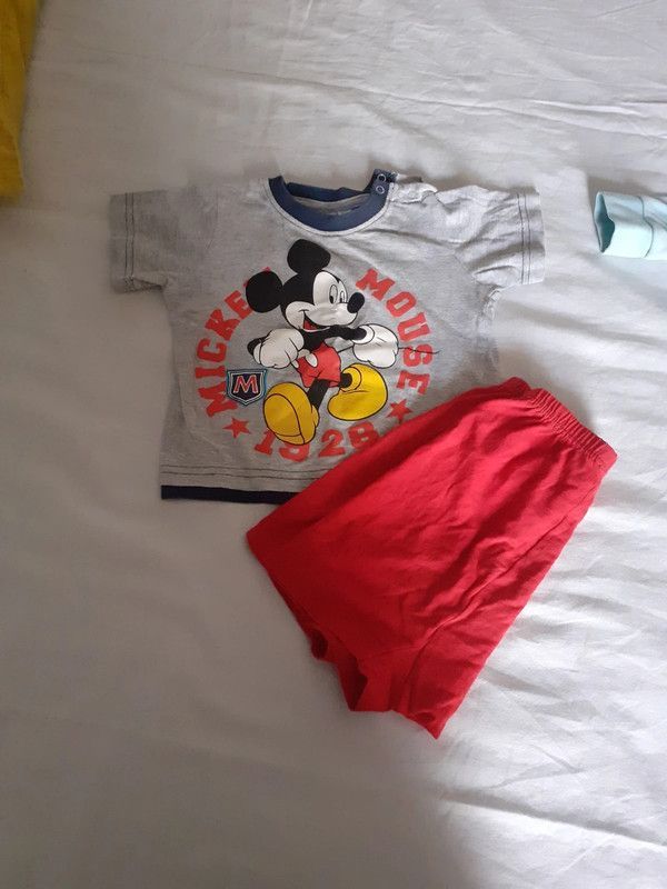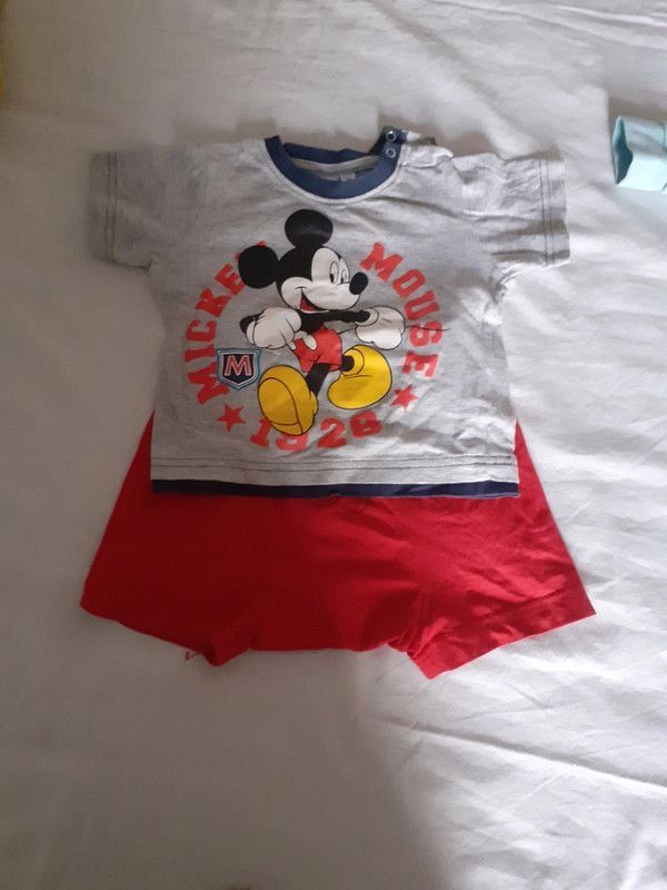 Descrizione:Maglietta più pantaloncini corti, la maglietta porta tg 9/12 mesi il calzoncino nn ha etichetta misura cm 19 vita, lunghezza 25 cm cotone