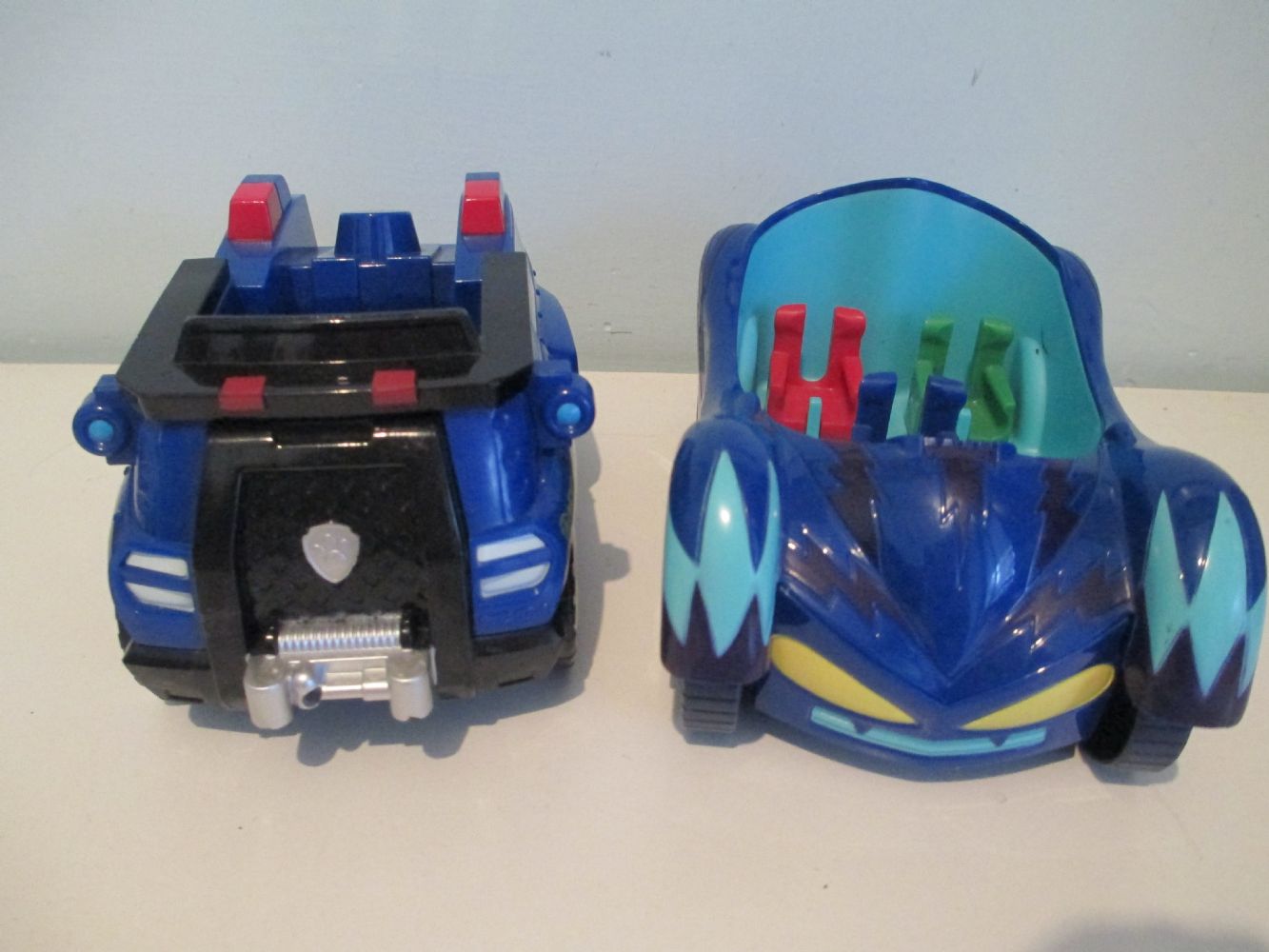 Due automobili giocattolo: quella a sinistra è dei Paw Patrol.