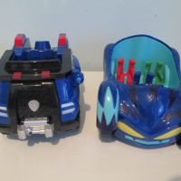 Due automobili giocattolo: quella a sinistra è dei Paw Patrol. Credo che manchino i personaggi.